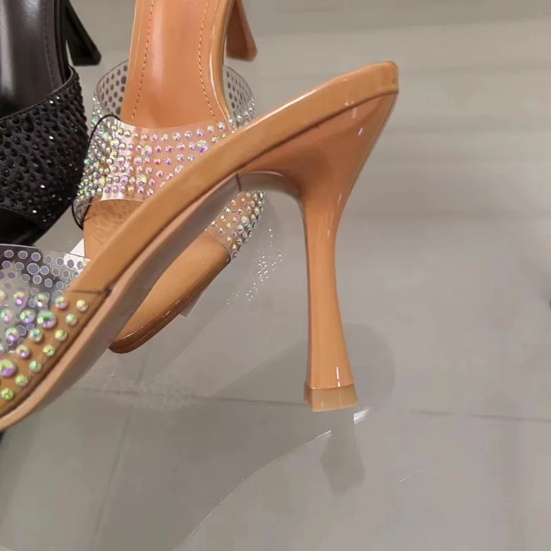 ADVBRIDGE - Summer Ladies Sandals Pointed Open Toe High Heels Party Stilettos PVC Transparent Luxury Shining Diamond Woman Mules Shoes