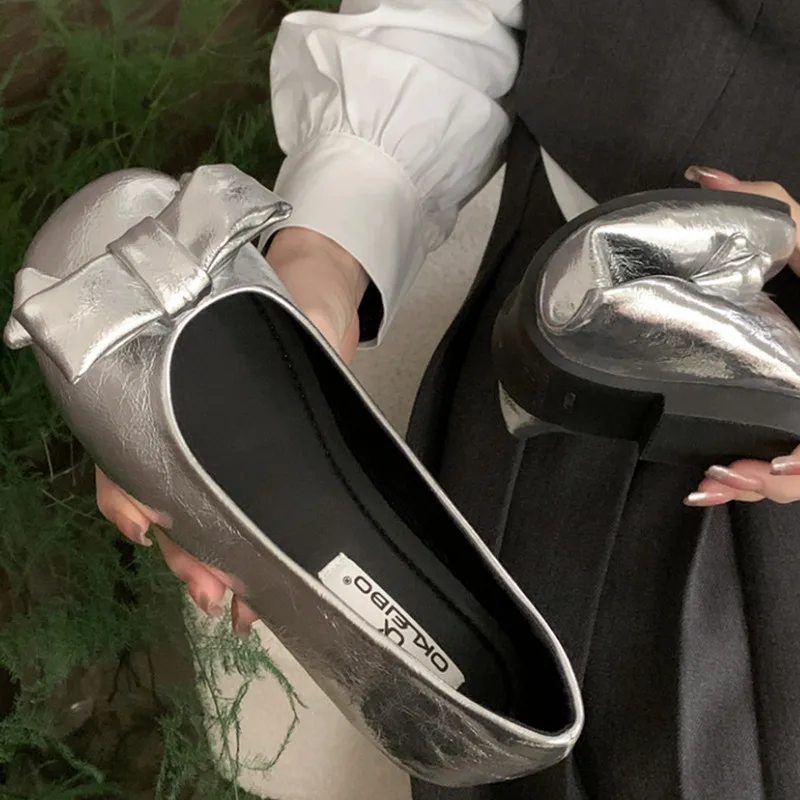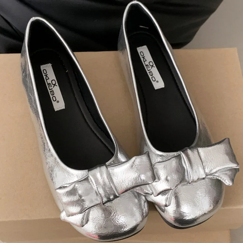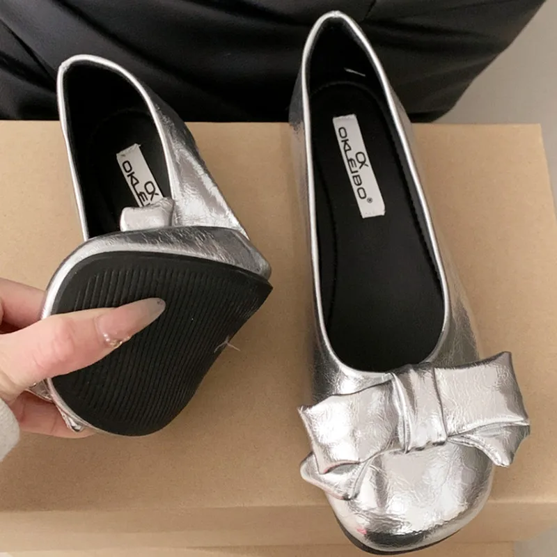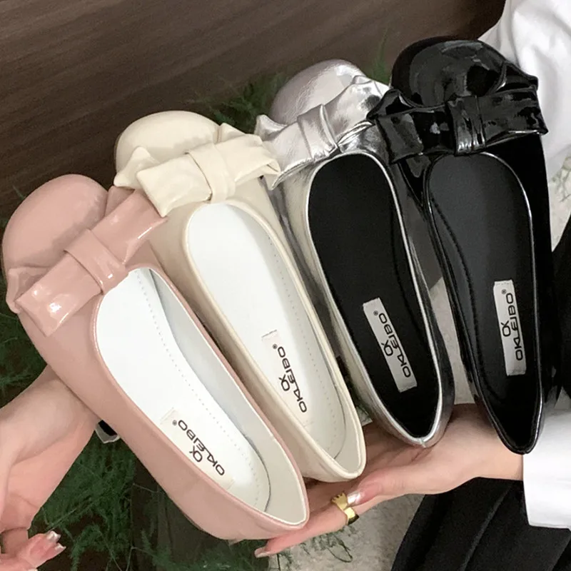 ADVBRIDGE  -  Sweet Bow Square Heel Women Flat Shoes Shallow Round Toe Slide Sandals Fashion Non-slip Comfortable Patent Leather Women Sandals