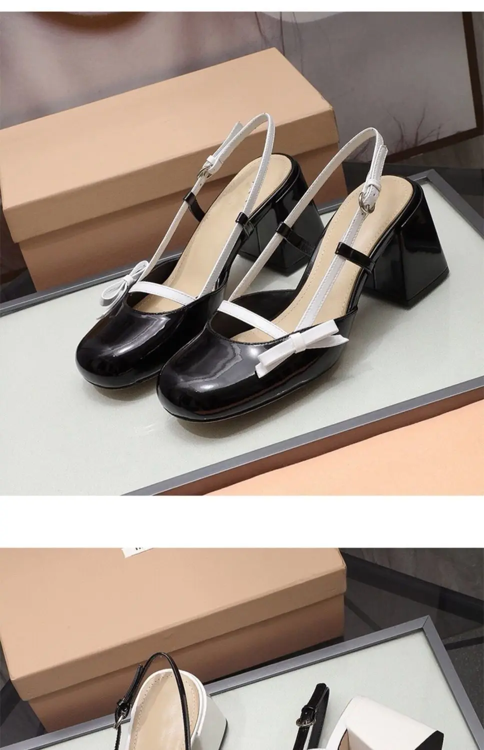 Advbridge Womens Mary Jane Shoes Black Patent Leather Female Sandals Back Straps with Bowknot