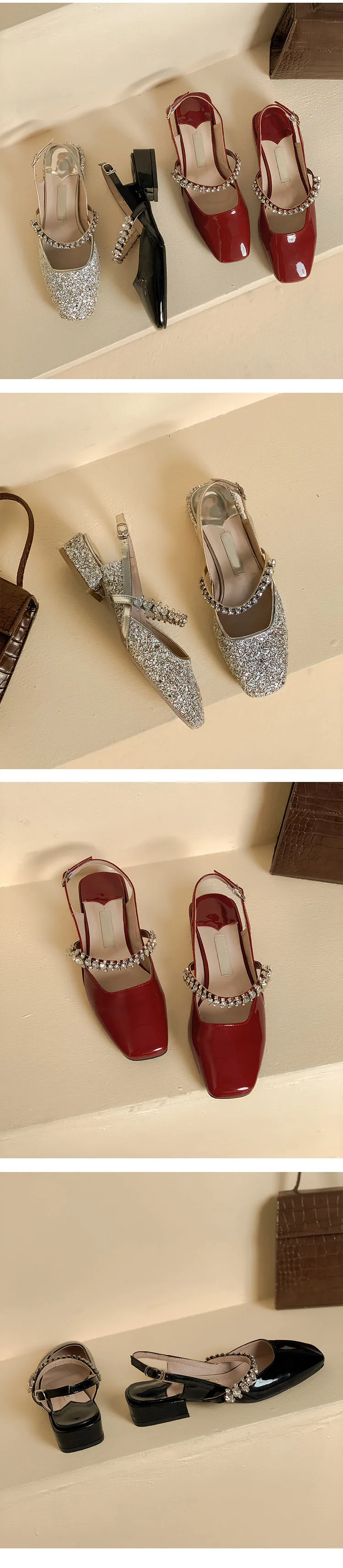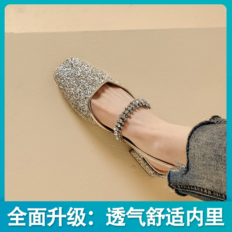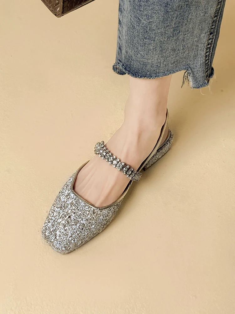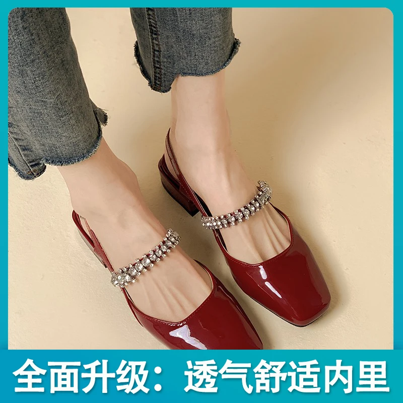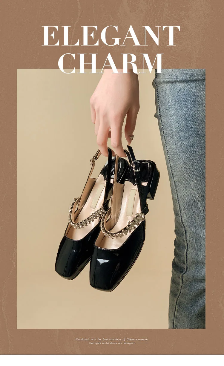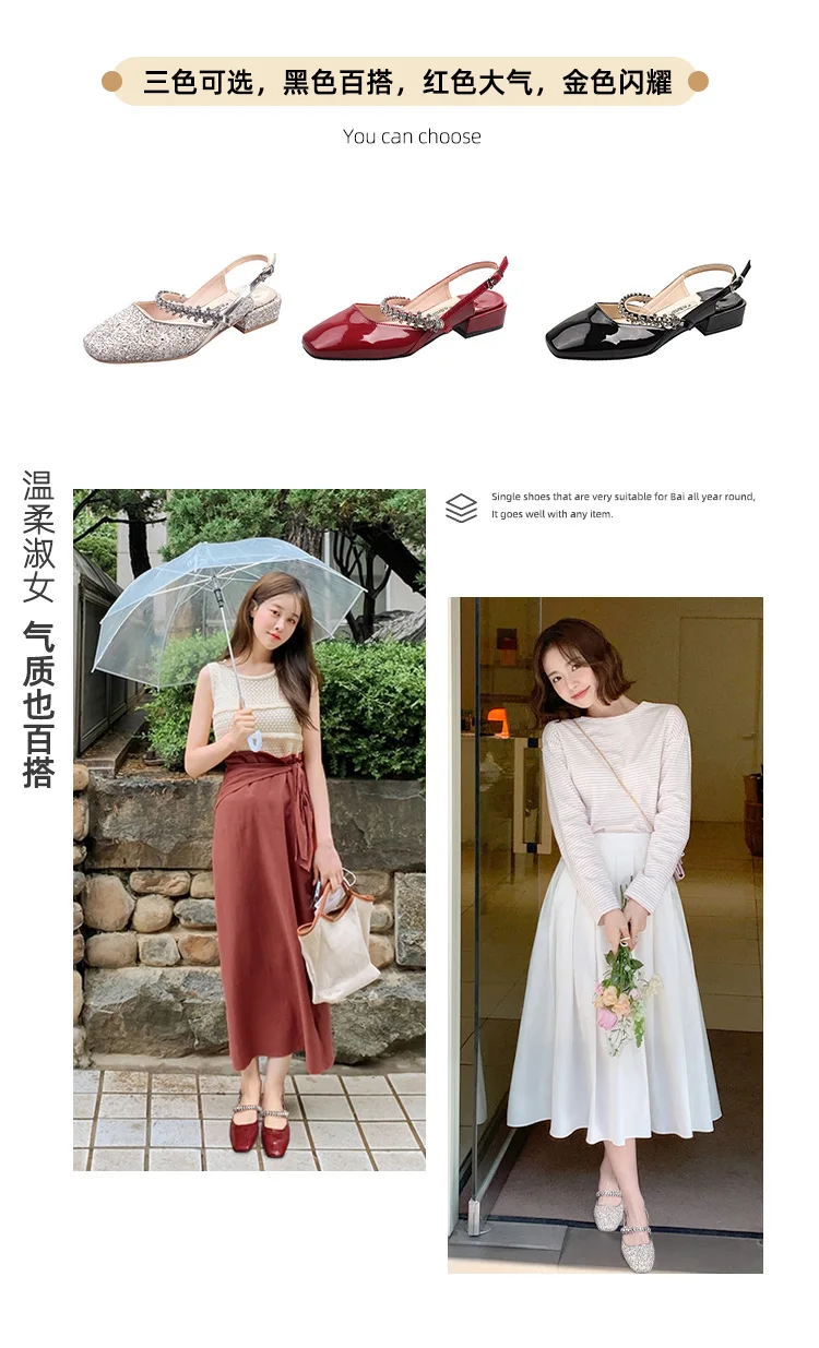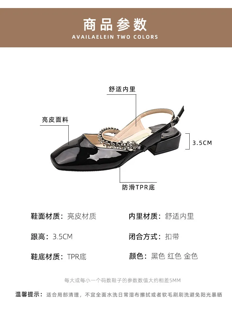 Advbridge women's sandals niche design sense summer new fashion rhinestone chunky heel Mary Jane shoes