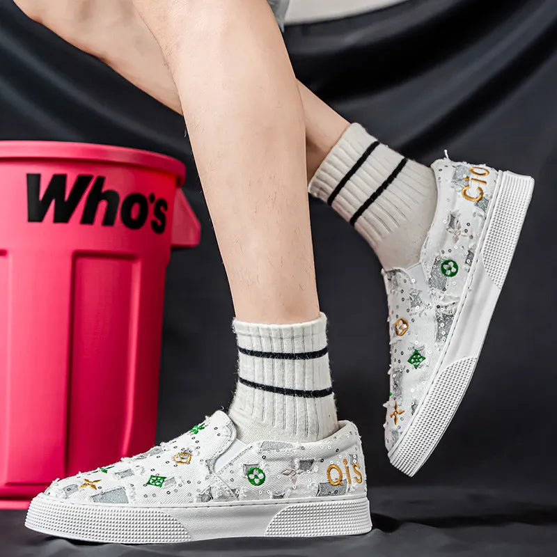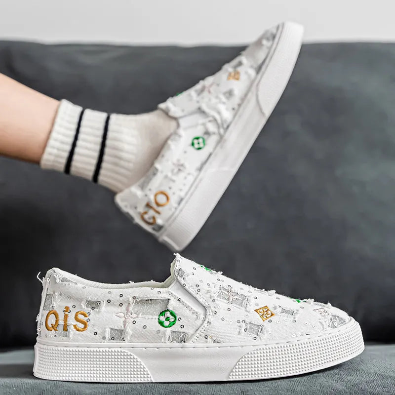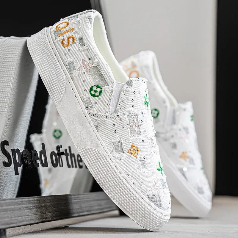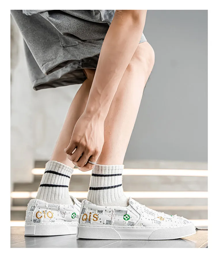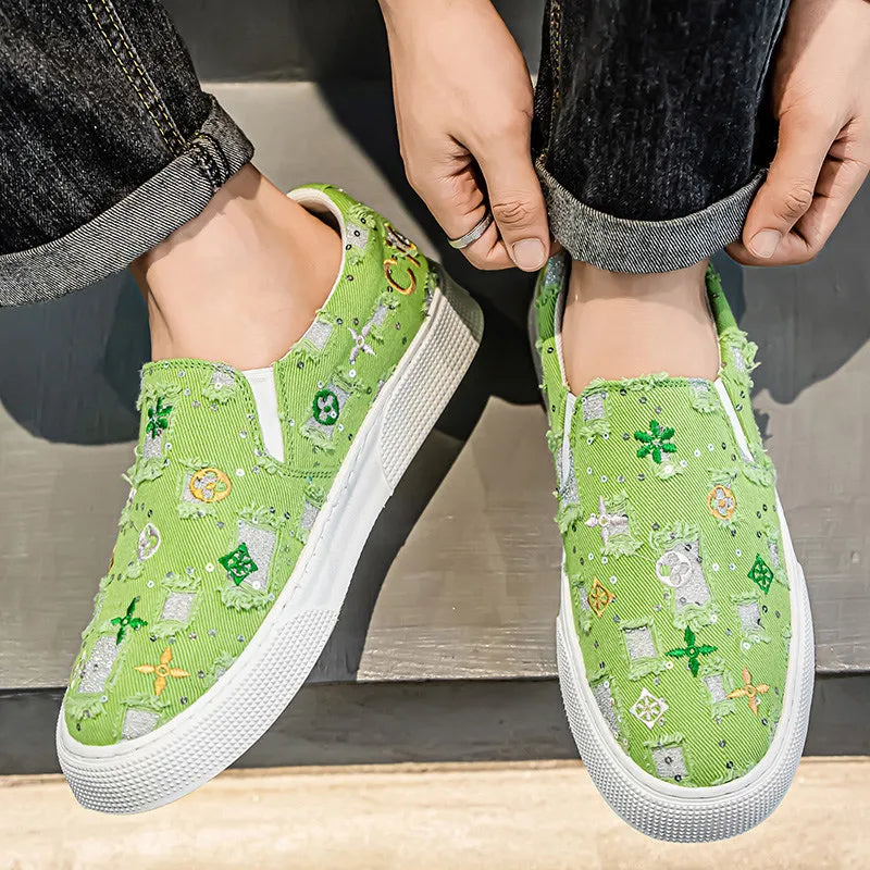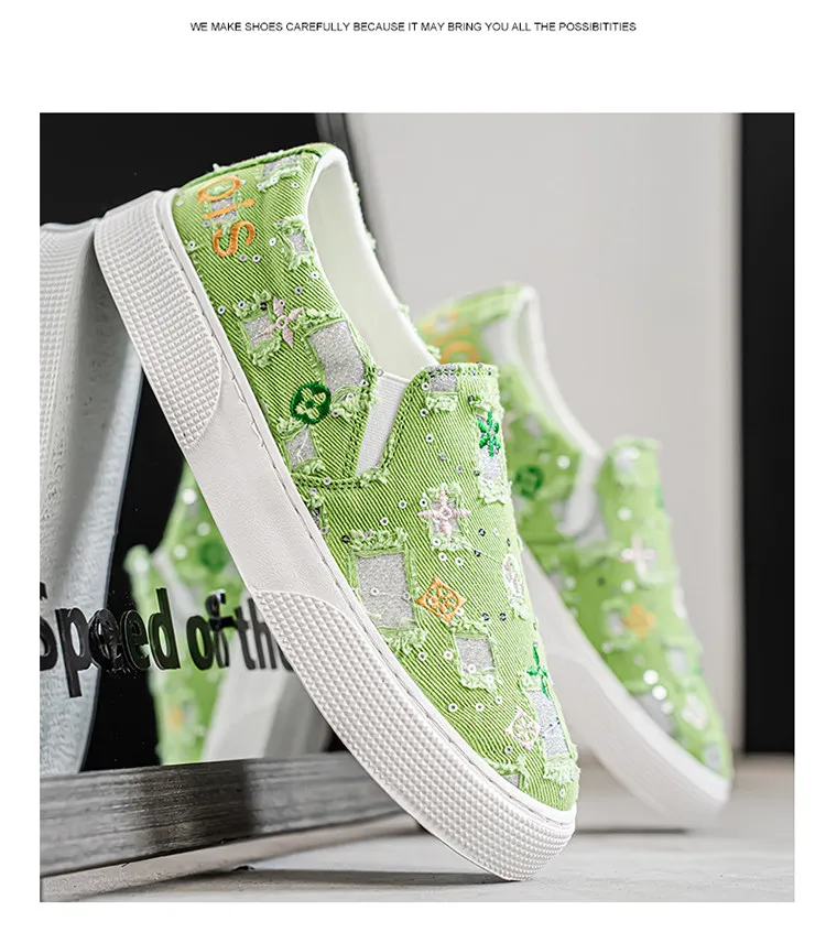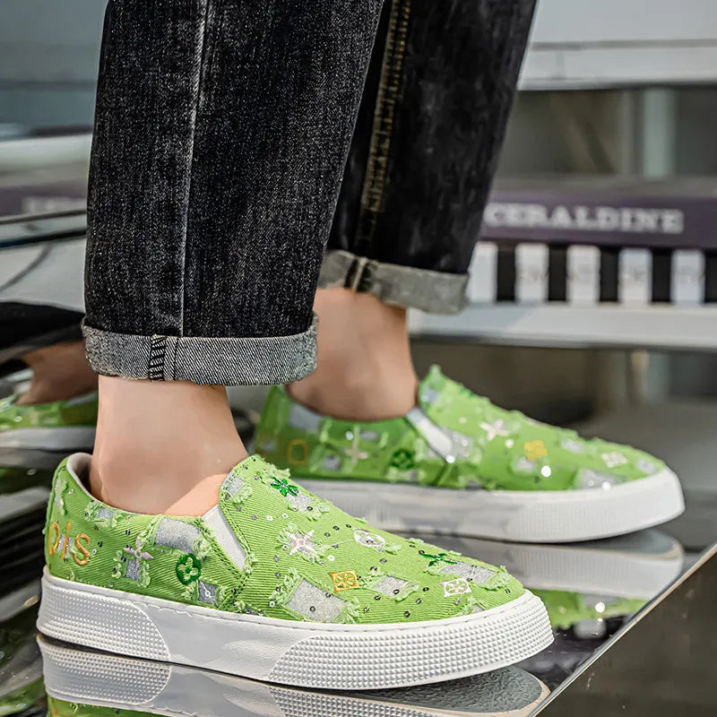 Advbridg Fashion Embroider Green Canvas Shoes For Man Designer Shoes Summer Platform Slip-on Shoes Man Outdoor Breathable Espadrilles Men