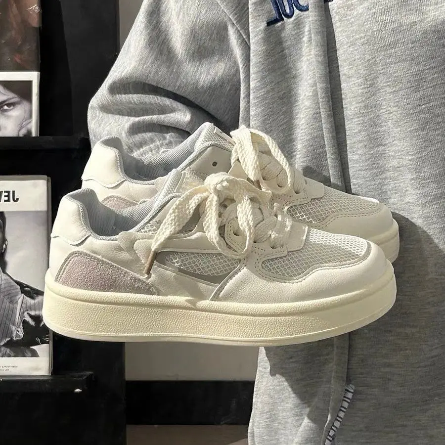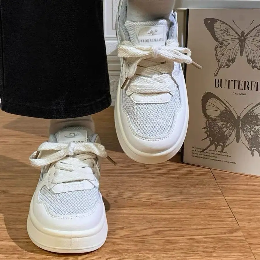 Advbridg Summer New Women’s White Mesh Chunky Platform Shoes - Ins Minimalist Unique Design Breathable Versatile Casual Sneakers