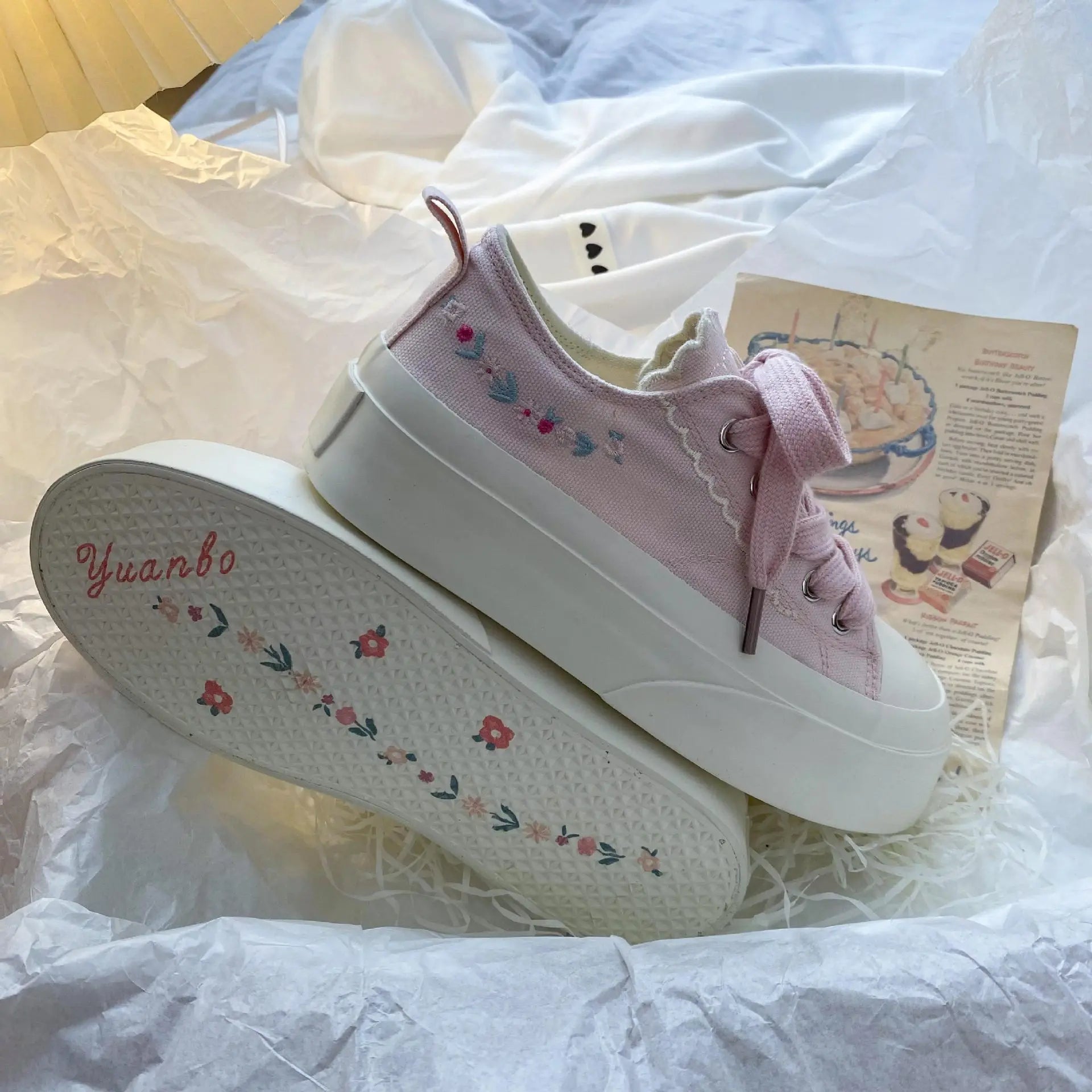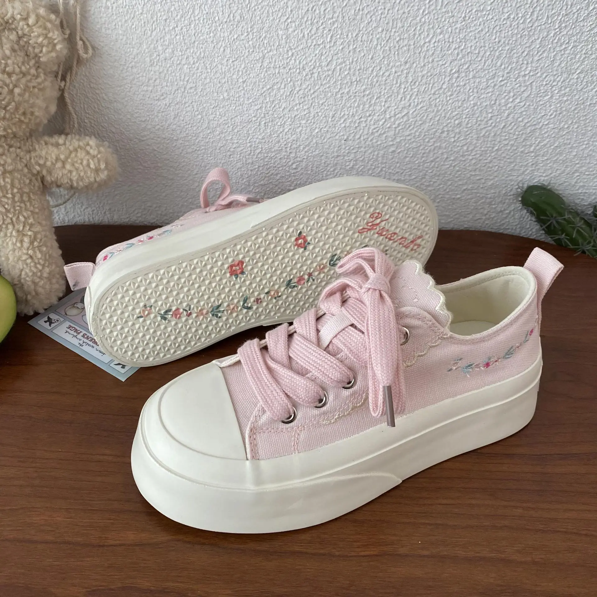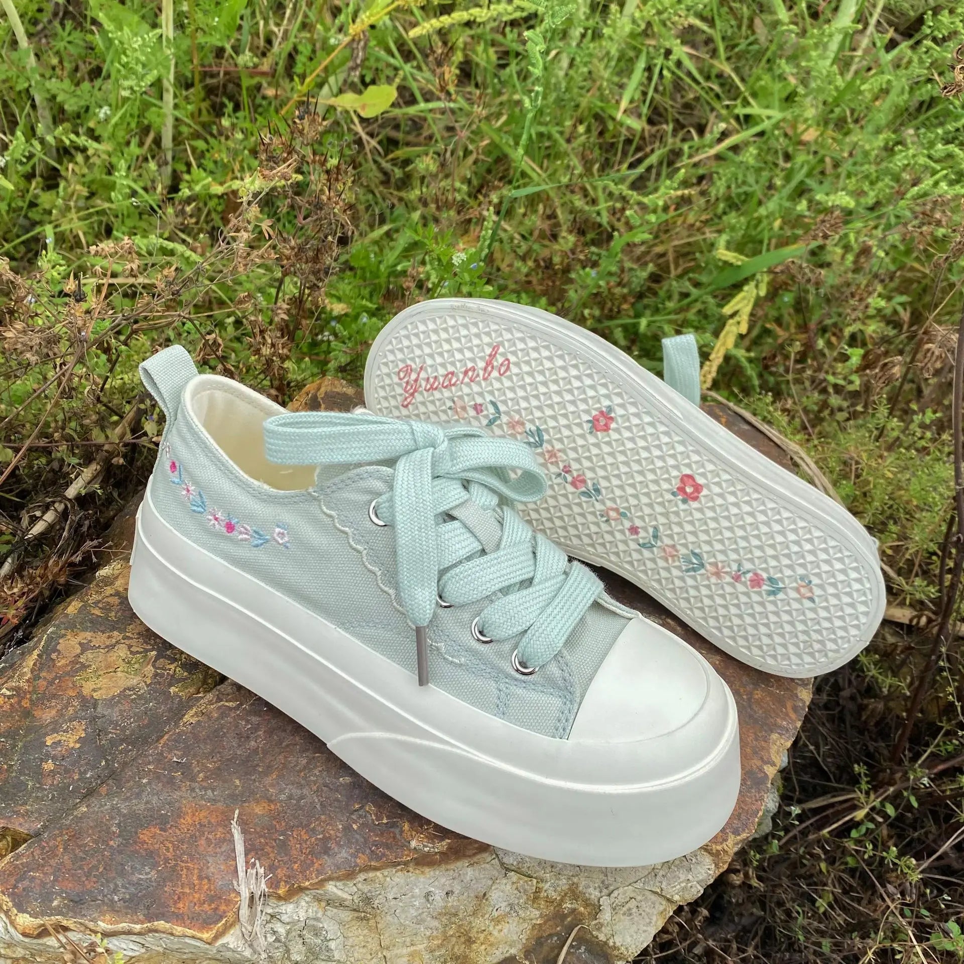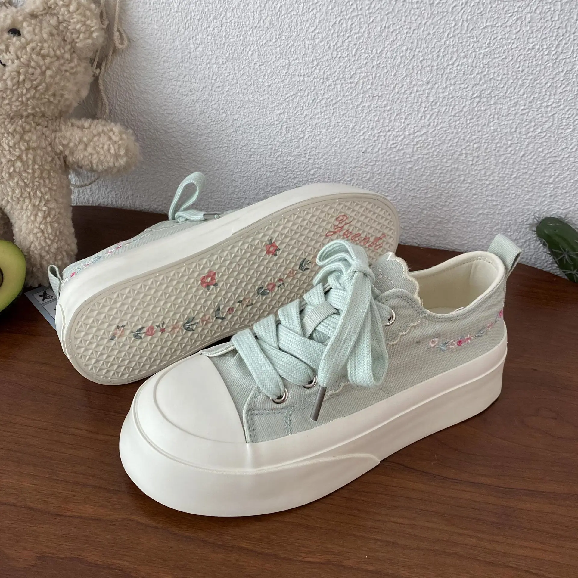 Advbridg Summer Women Low Top Chunky Canvas Sneakers Embroidered Flowers White Shoes Student Casual Skate Shoes Height Increase