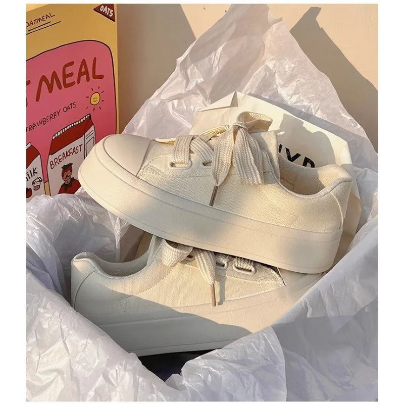 Advbridg Thick soled white shoes for women 2025 new style women's shoes fashionable casual board shoes versatile student canvas shoes