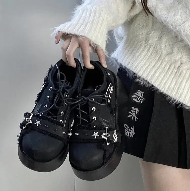 Advbridge 2024 New Y2K Star Print Chunky Platform Ankle Boots Women Metal Chain Blue Denim Boots Woman Cute Thick Bottom Jk Lolita Shoes