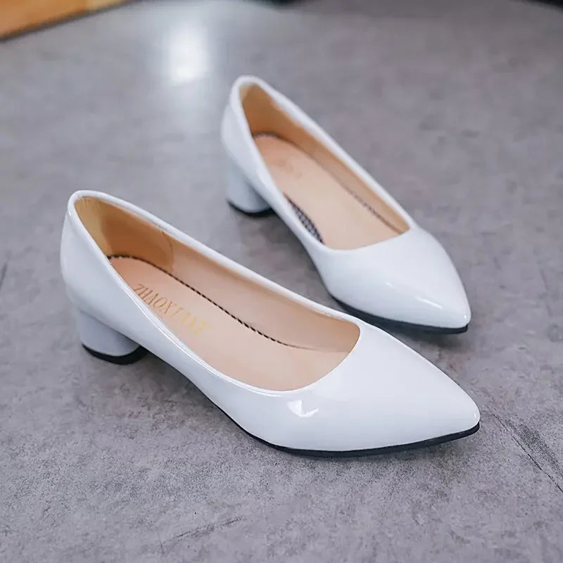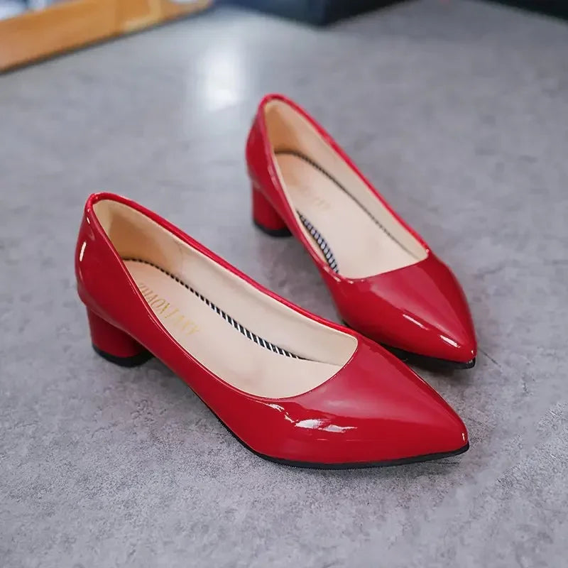 Advbridge 2024 Spring/Summer Autumn Single Shoes Korean Edition Pointed Thick Heels Women's Lacquer Leather High Heels Summer Casual Shoes