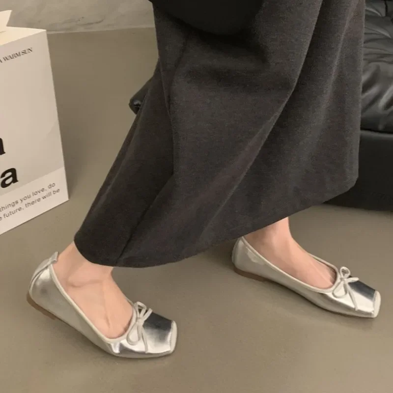 Advbridge 2024Women Spring Shoes Square Toe Boat  Bow Ballet Flats Velvet Slip on Flat  for Female