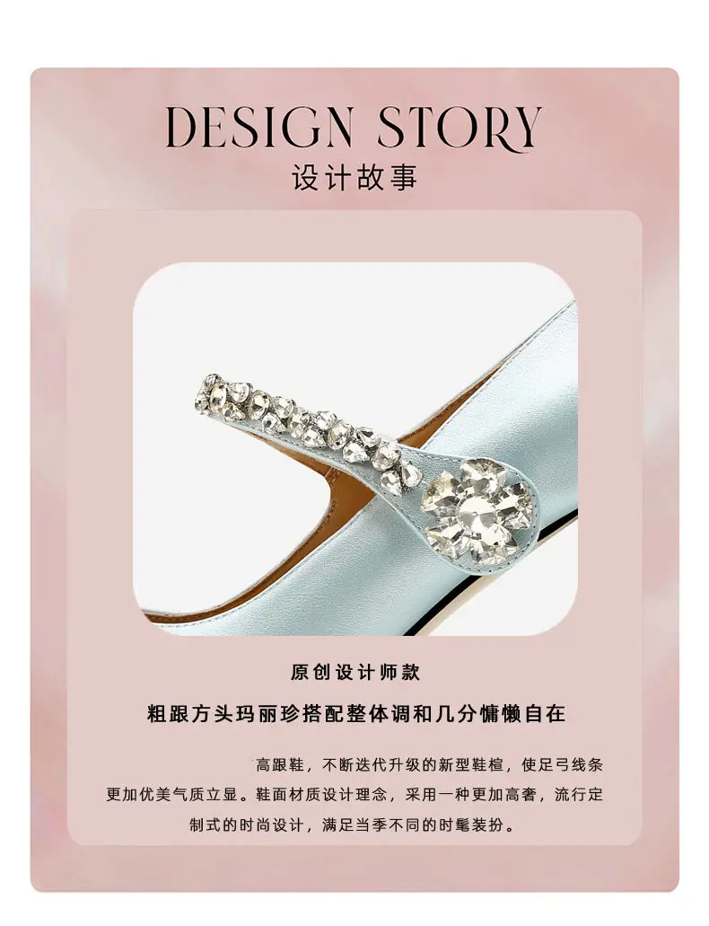 Advbridge 2025 autumn new leather sweet shallow mouth square head diamond chunky heels Mary Jane high heels fashion women's shoes