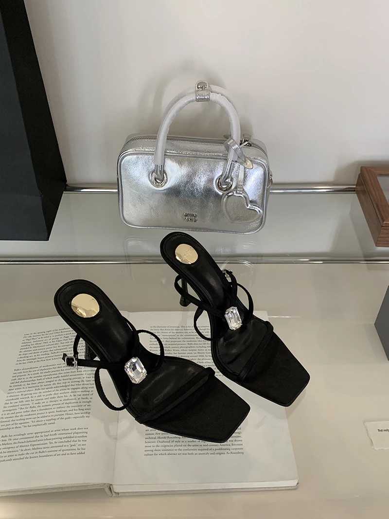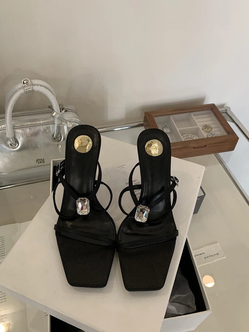 ADVBRIDGE - 9cm Stiletto Heels Sandals Black Belt Cross Buckle Crystals Ladies Summer Shoes Fashion High Heels Sandalias De Mujer