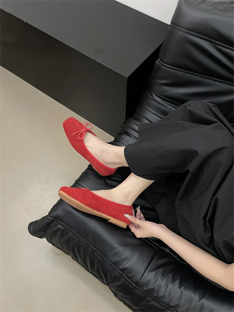 ADVBRIDGE - Autumn Women Flats Shoes Fashion Square Toe Ladies Ballerina Shoe Soft Flat Heel Outdoor Casual Mary Jane Candy Color Shoes