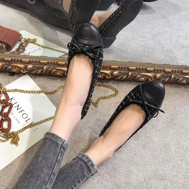Advbridge Ballerina Women's Flat Shoes Comfort Round Toe Ladies Loafers Elegant Bowknot Women's Single Shoes Slip on Soft Moccasins Flats