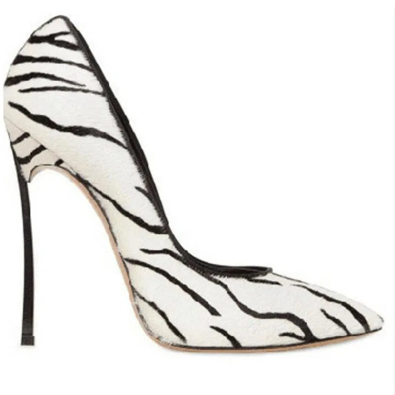 Advbridge Black White Zebra Horsehair Blade Heels Pumps Woman 12cm Metal Stiletto High Heels Purple Silk Shallow Cut Slip On Party Shoes
