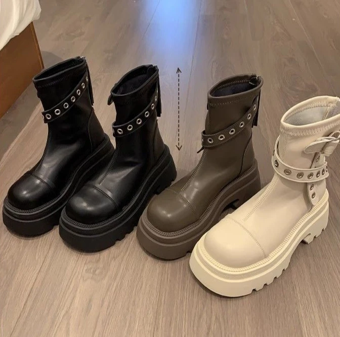 Advbridge Booties Leather Black Round Toe Woman Short Shoes Platform Punk Style Chunky Combat Ankle Boots for Women Sale High Quality Boot