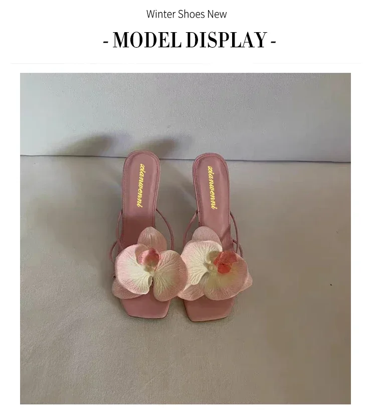 Advbridge Brand Shoes Female 2024 Summer New Elegant Flowers Design Women's Slippers Casual Fashionable Outer Wear High Heel Slides Women