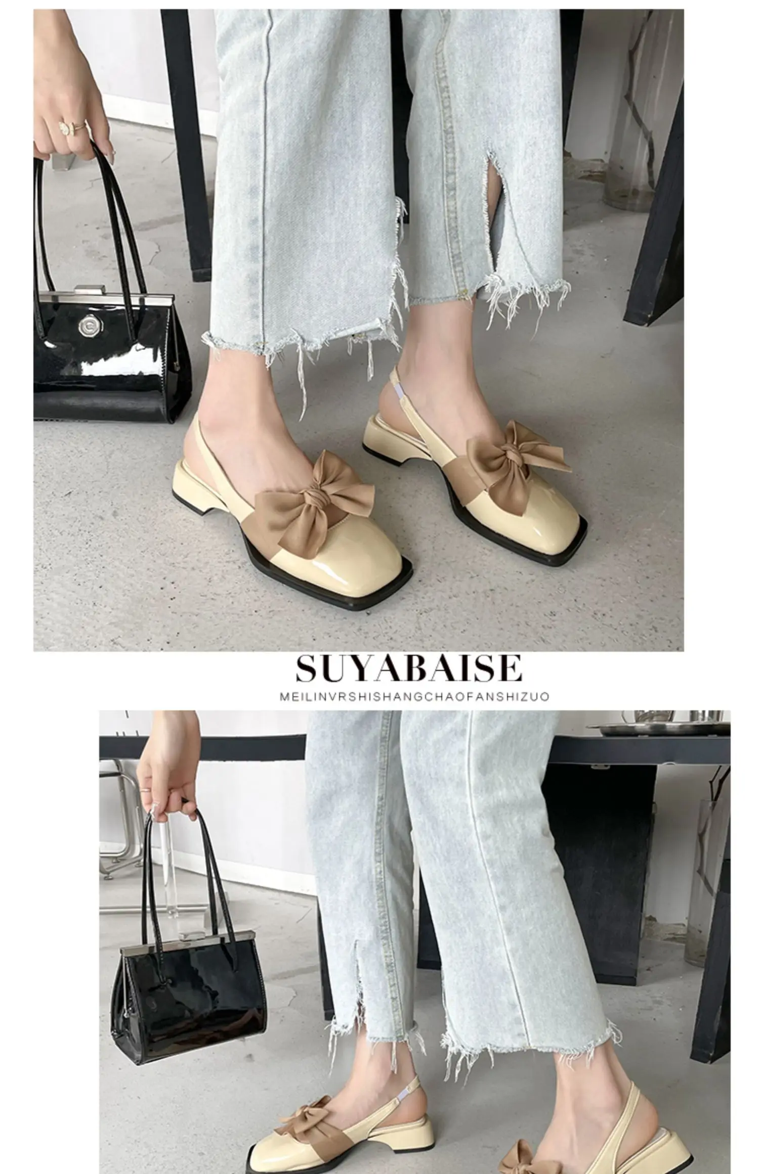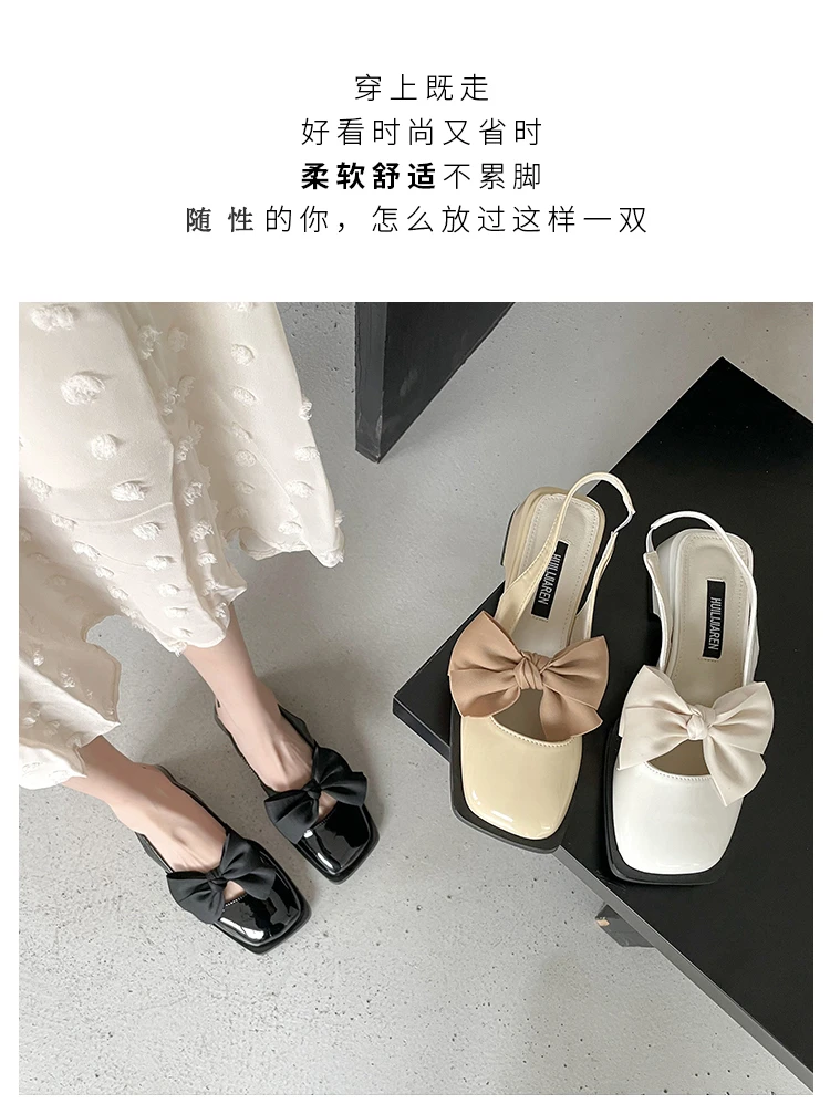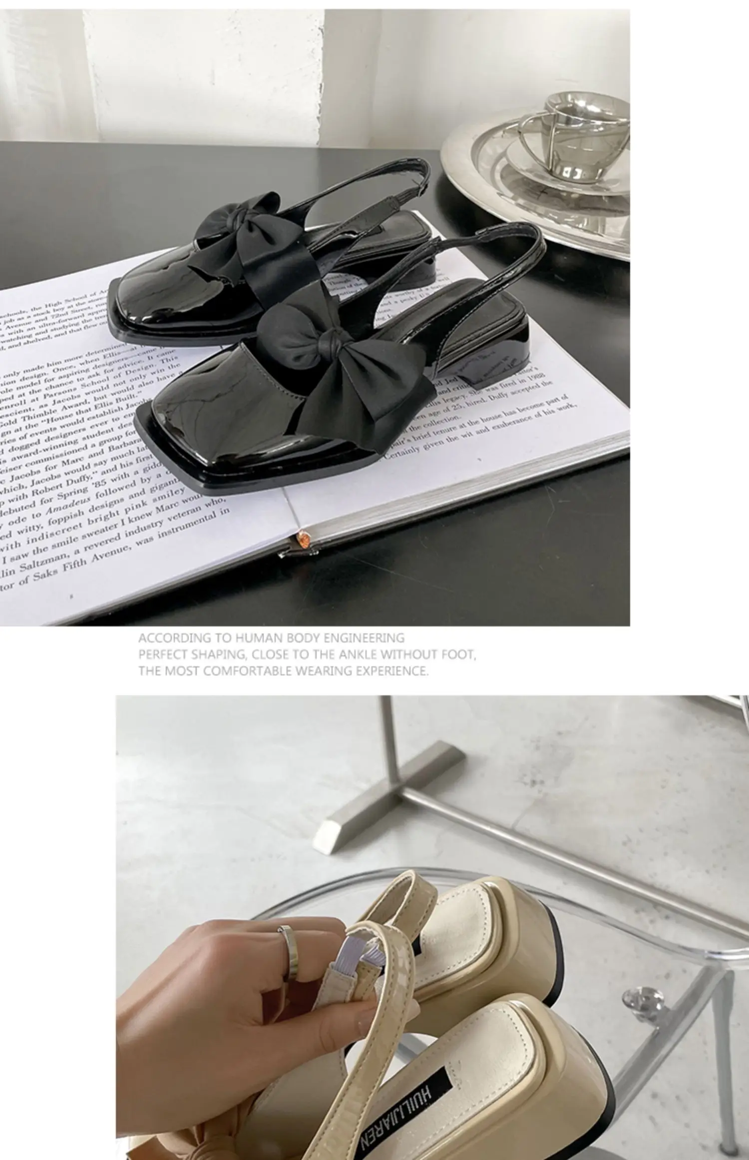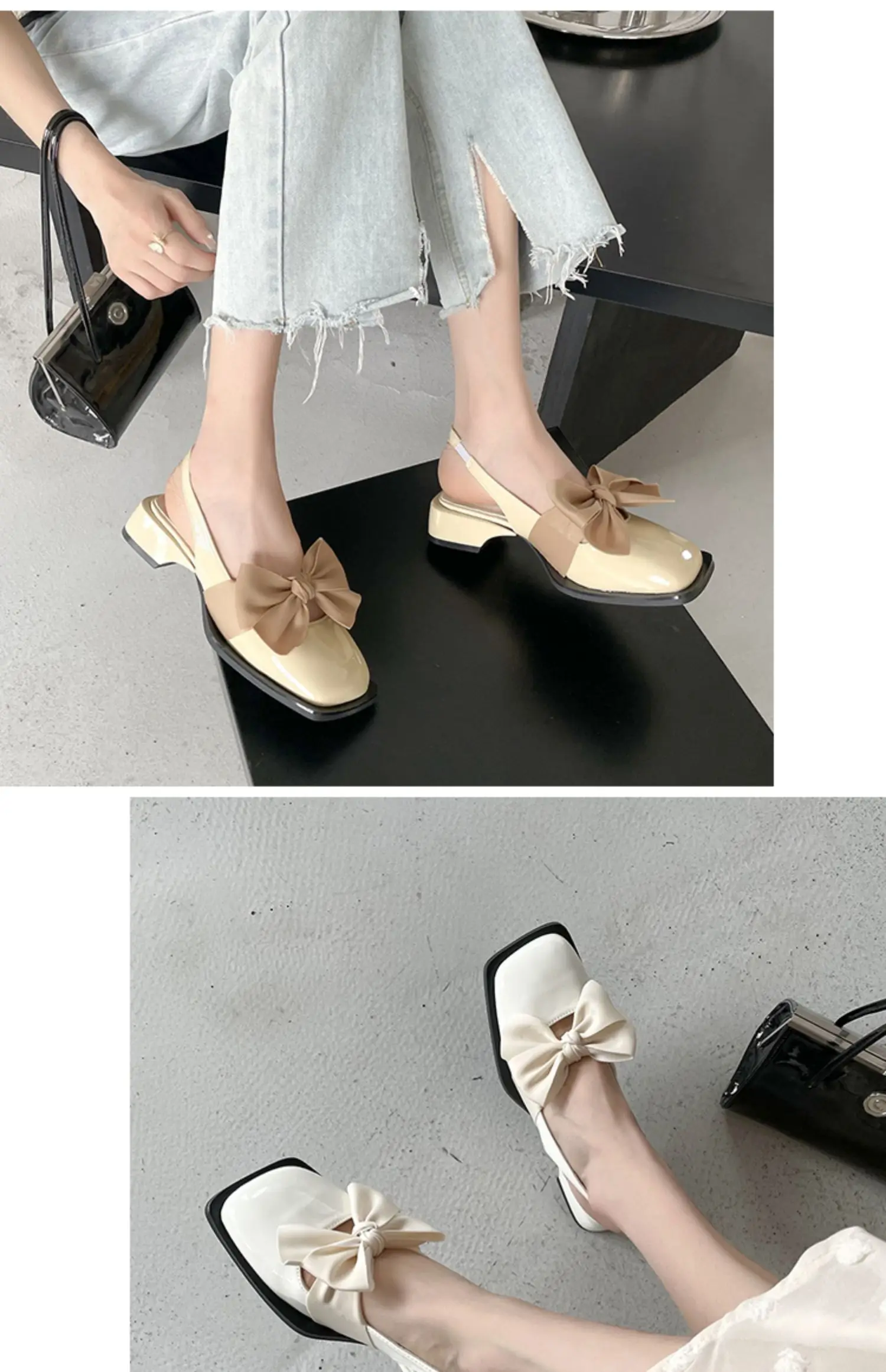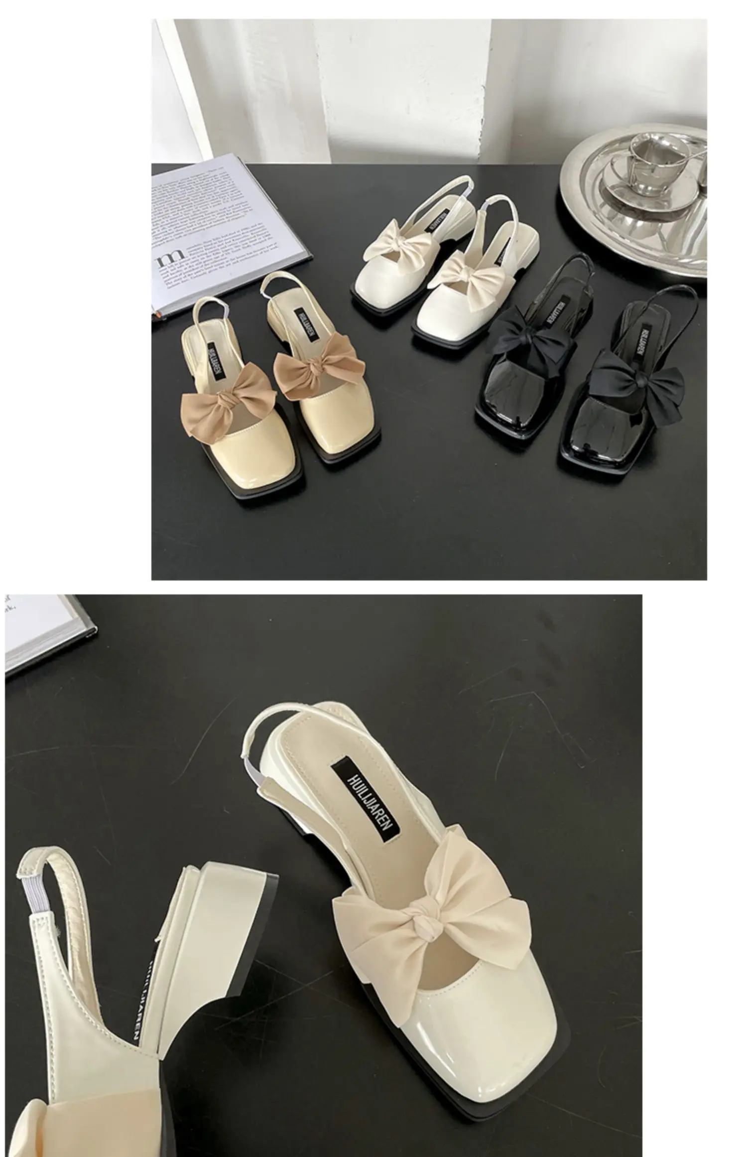 Advbridge Closed Toe Sandals Female Shoe All-Match 2024 Women's Med Clear Heels Girls Bow New Medium Comfort Beige Block Square Summer Ret