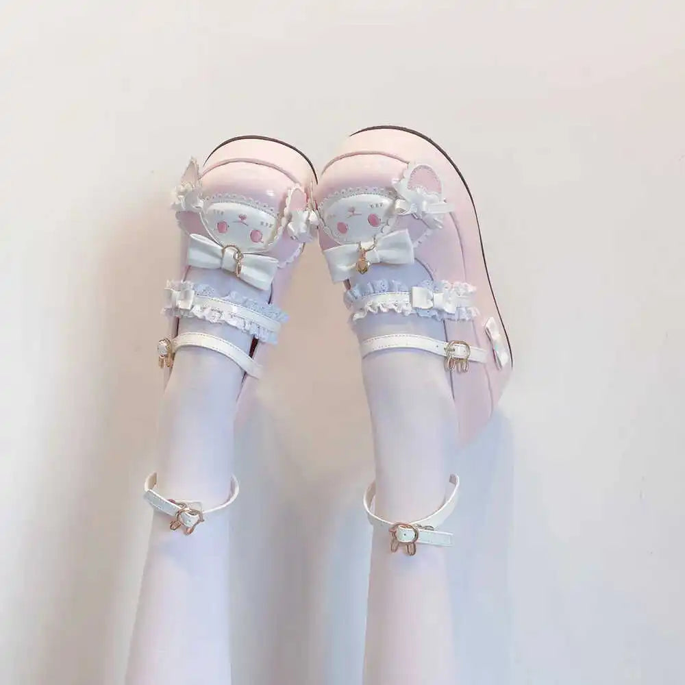Advbridge Cute Rabbit Doll Japanese Soft Sister Bow Lo Shoes Jk Height Enhancement Cute Lolita Shoes Versatile Sweet Lolita Single Shoes