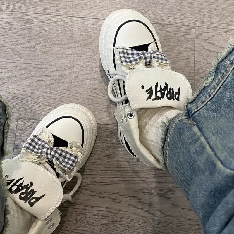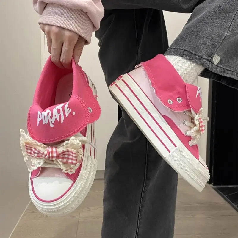 ADVBRIDGE - Cute Style Canvas Shoes High Top Thick Sole Womens Casual Shoes Original Red Bow Breathable Lightweight Feminino Shoes