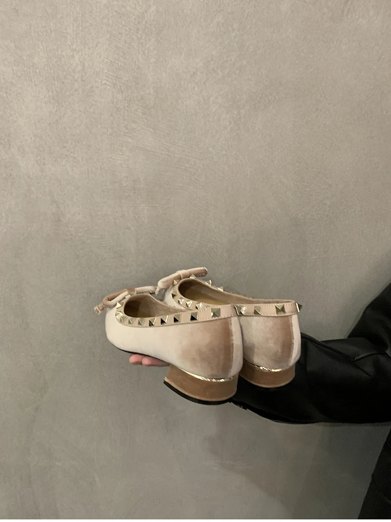 Advbridge Designer Low Heel Women Mary Jane Shoes Fashion Rivet Butterfly-knot Shoes 2025 Spring Autumn Wedding Party Shoes
