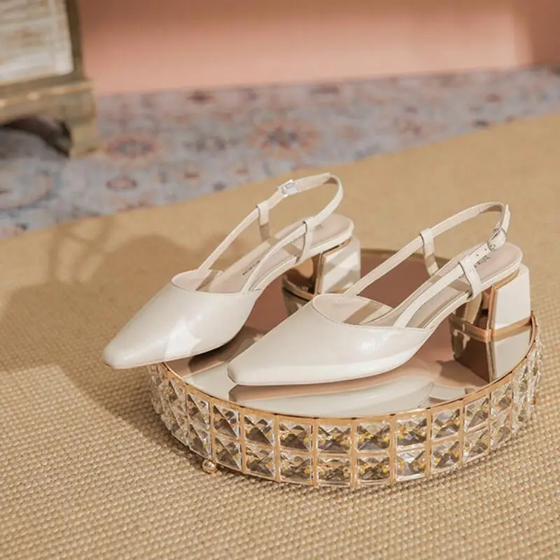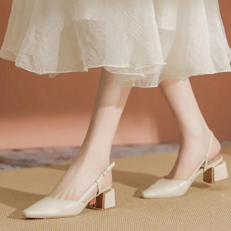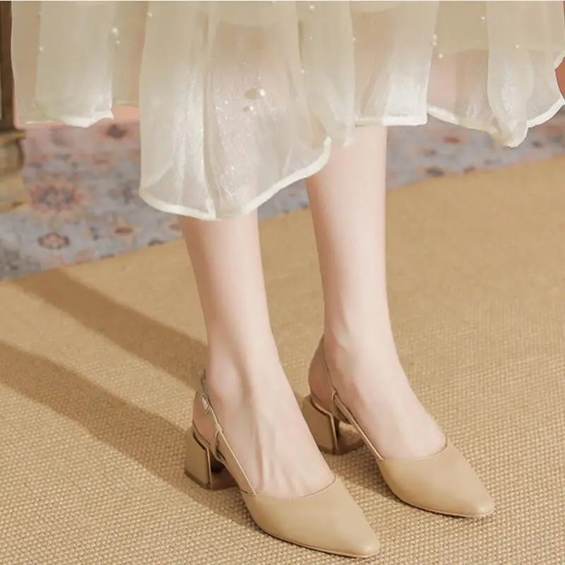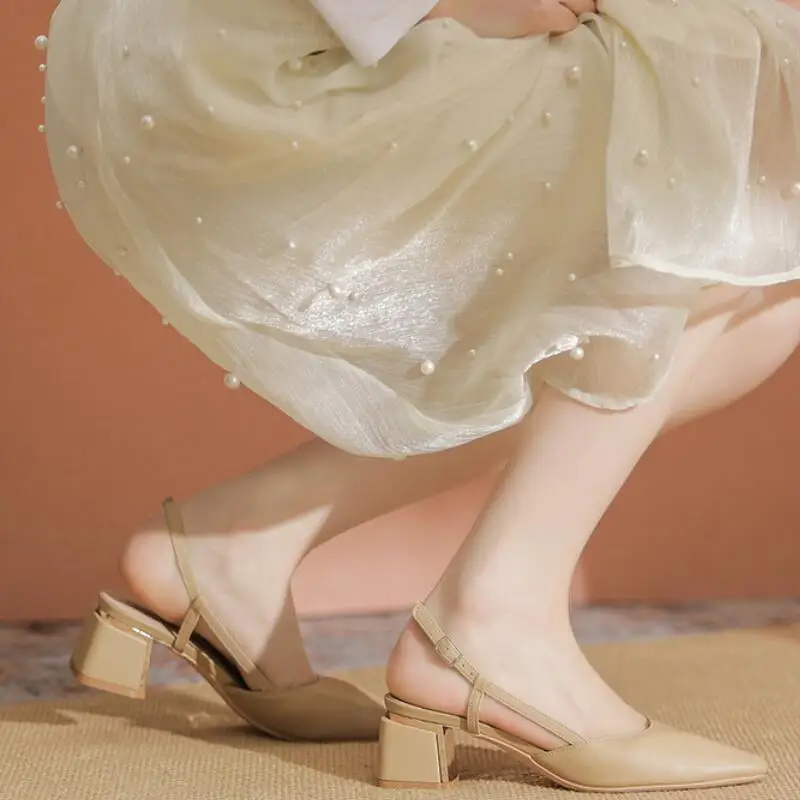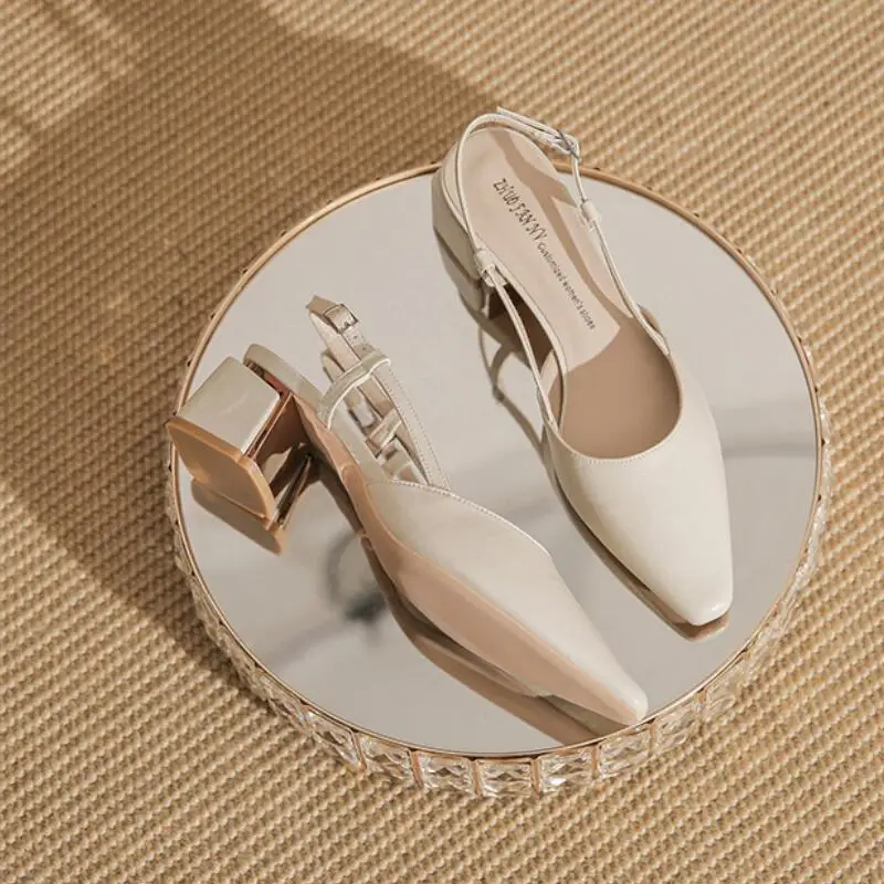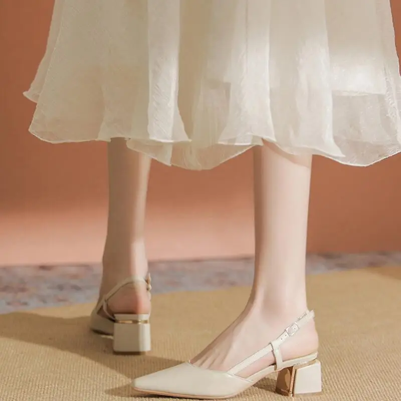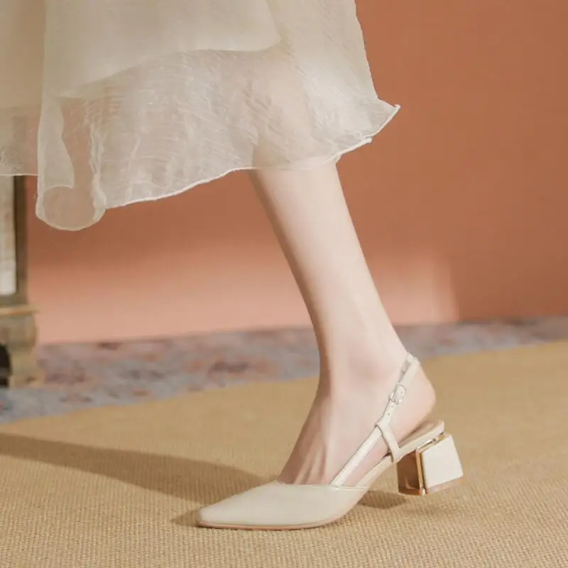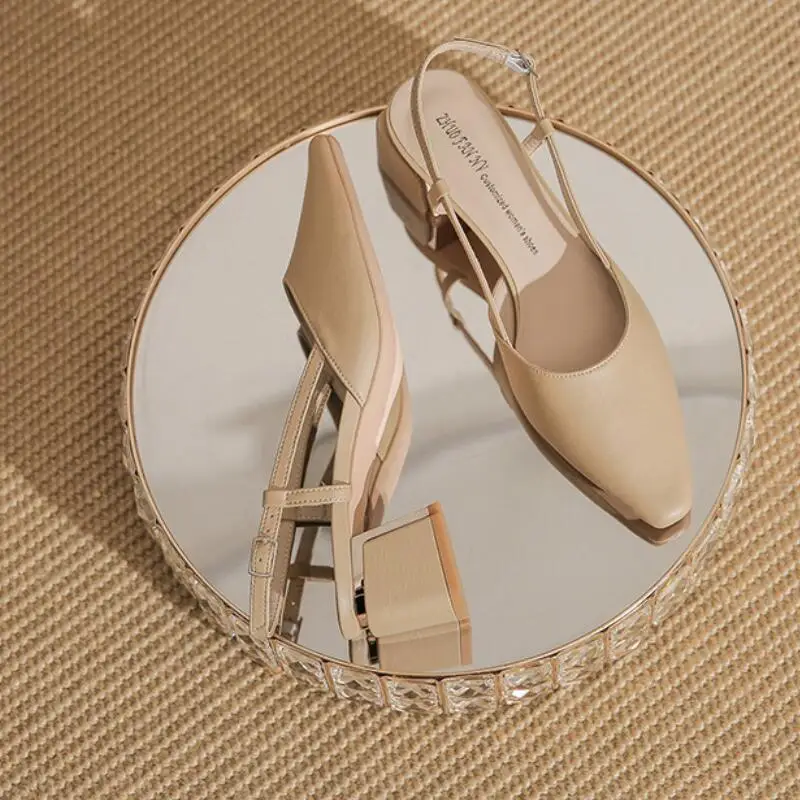Advbridge - Elegant Middle Heels Pointed Toe Shoes Women's Thick Heels Luxury Shoes High Heels Fashion Slingback Pumps Office Shoe