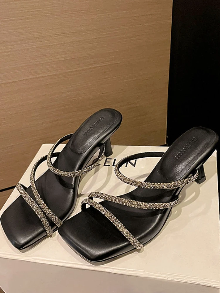 Advbridge Fairy Style Sweet Rhinestones Sandals Women Summer Outside Wear New Square Head Shoes Female High Heels Fashion Sandals