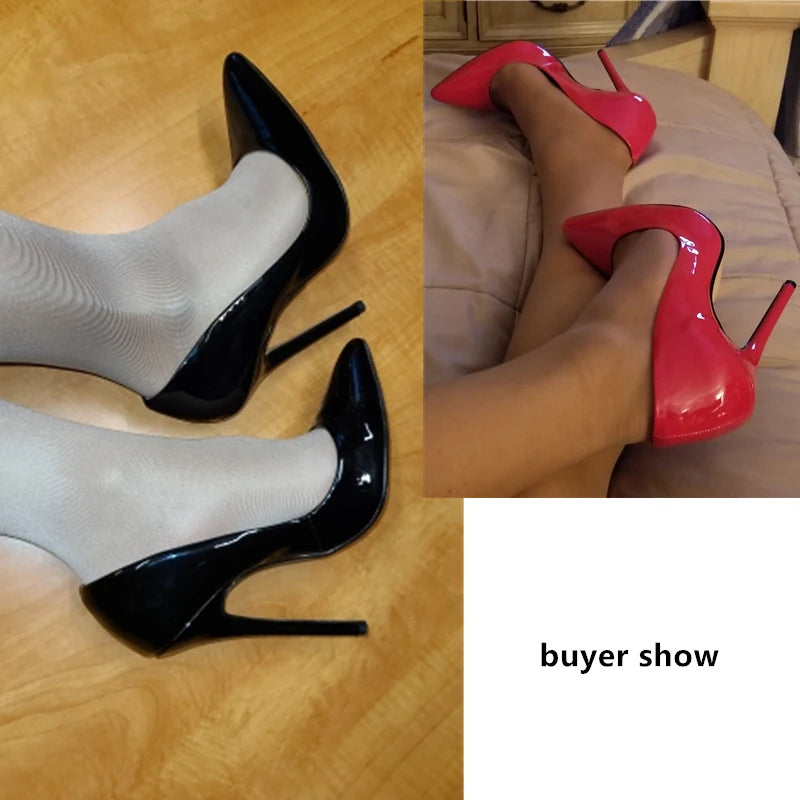 Advbridge Fashion High Heels Sexy Shoes Women Pumps Large Size 43 44 45 White Stiletto Heel Patent Leather Office Wedding Shoes Hey Si Mey