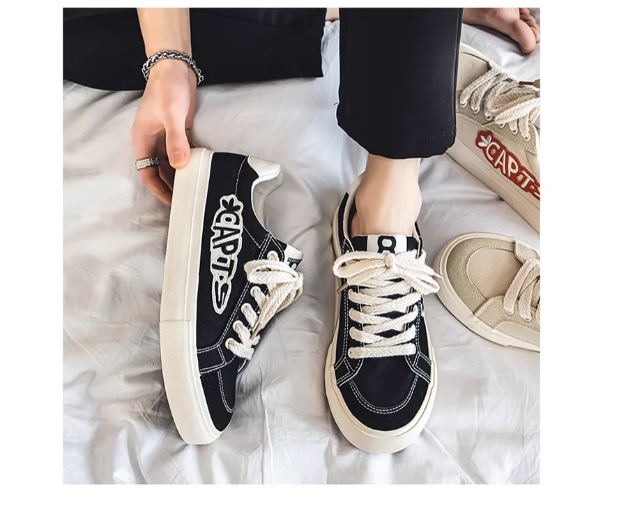 Advbridge Fashion Low-top Canvas Shoes for Men Letter Embroidery Casual Breathable Skateboard Shoes All-match Black Designer Zapatillas