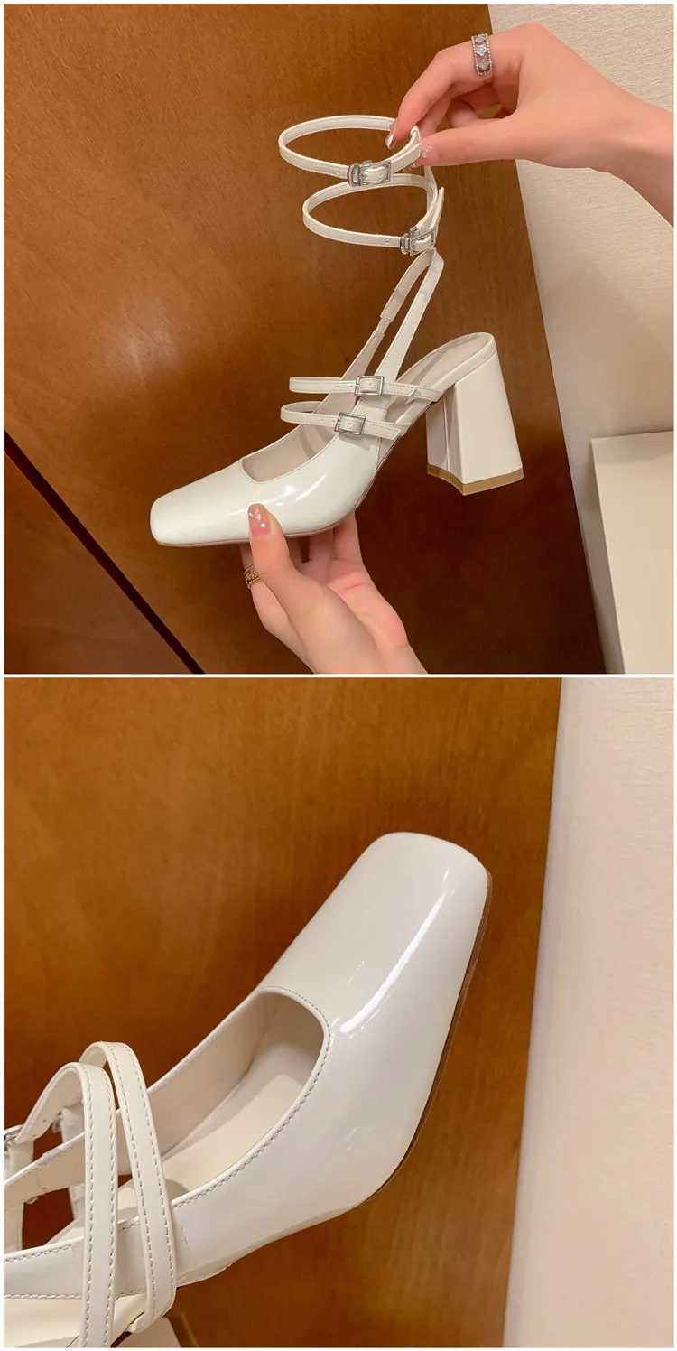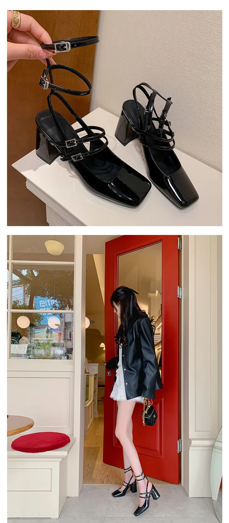 Advbridge Fashion Sandals Women New High Quality Real Leather Square Head Open Heel Ankle Buckle Strap High Heel Modern Open Shoes