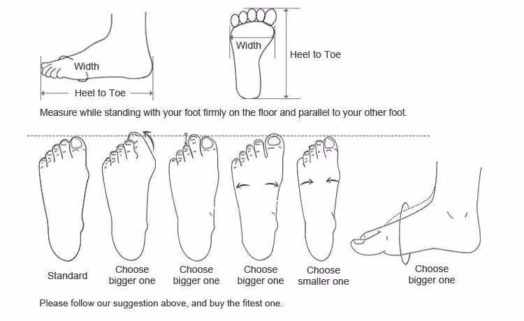 Please measure your foot length clearly and compare the details with the size table before you select the size .