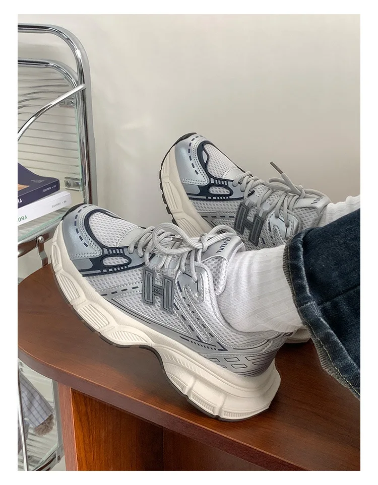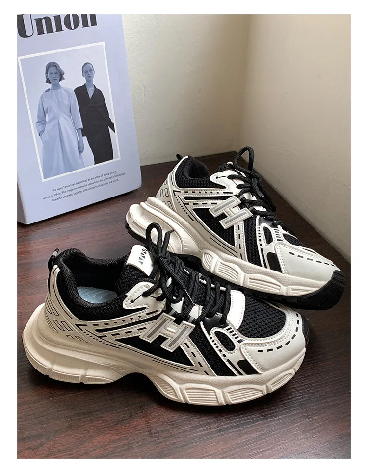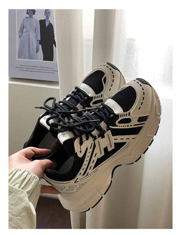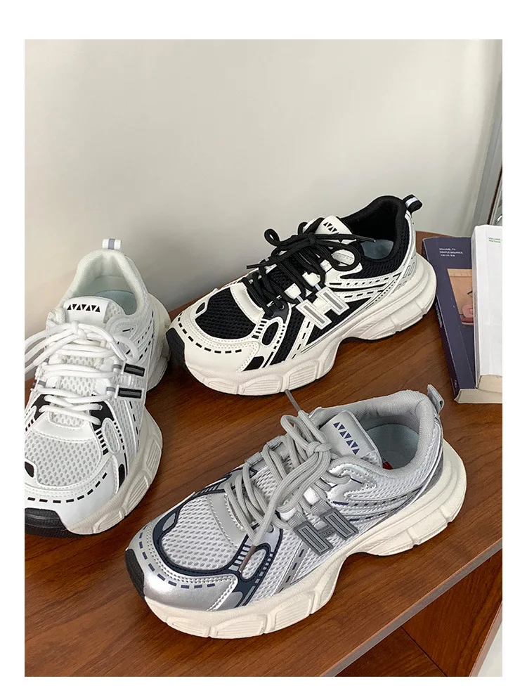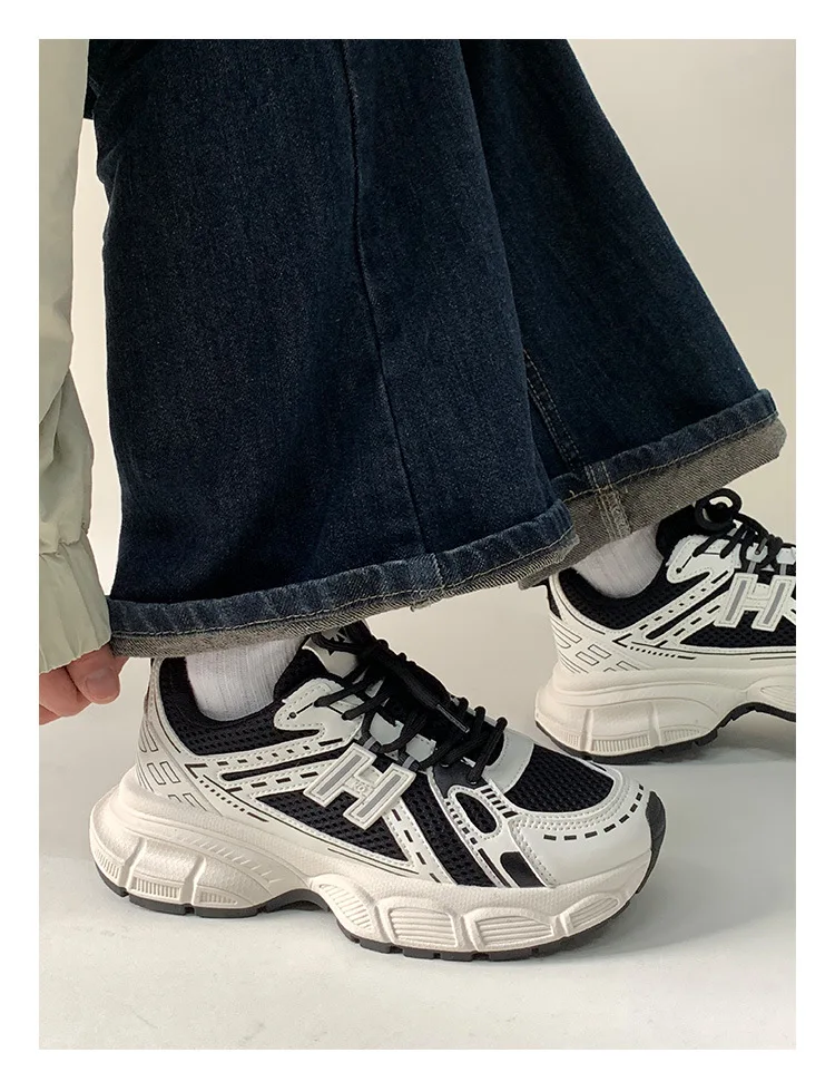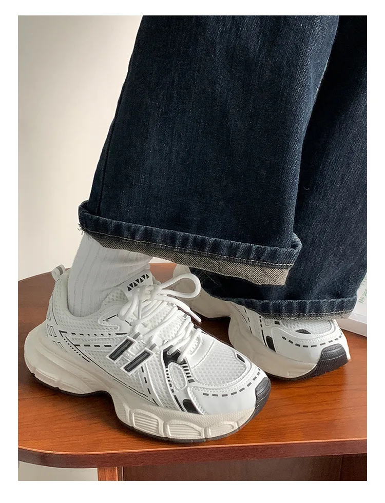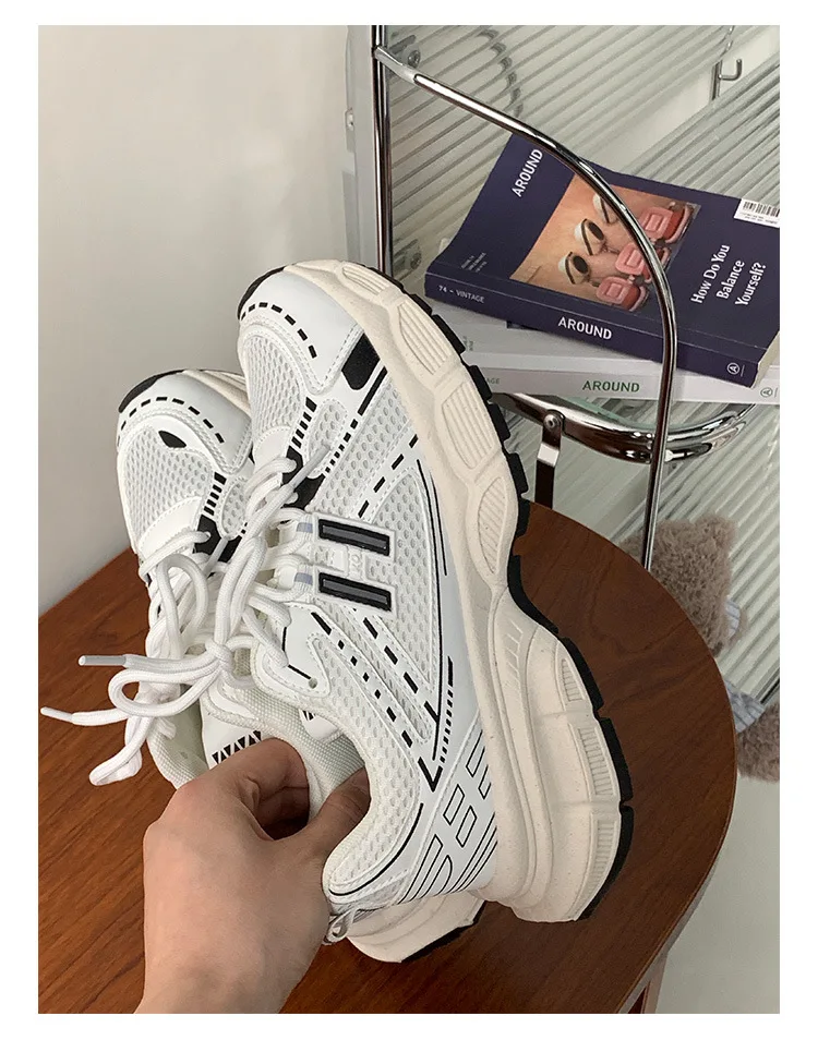 Advbridge Female Dad Shoes 2023 Adult Platform Trainers Stylish Casual Mesh Chunky Sneakers for Women White Sport Thick Sole Footwear