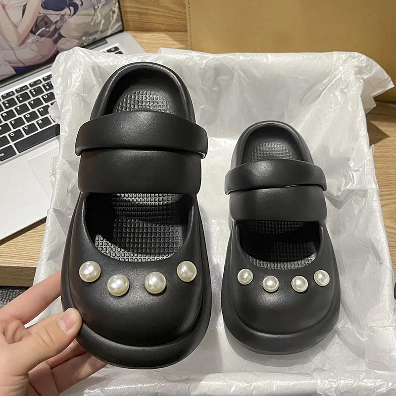 Advbridge Flat Shoes Female Low Summer Clogs Woman Slippers Casual Pantofle Slides String Bead Platform Cover Toe Beach Luxury 2023 Soft P