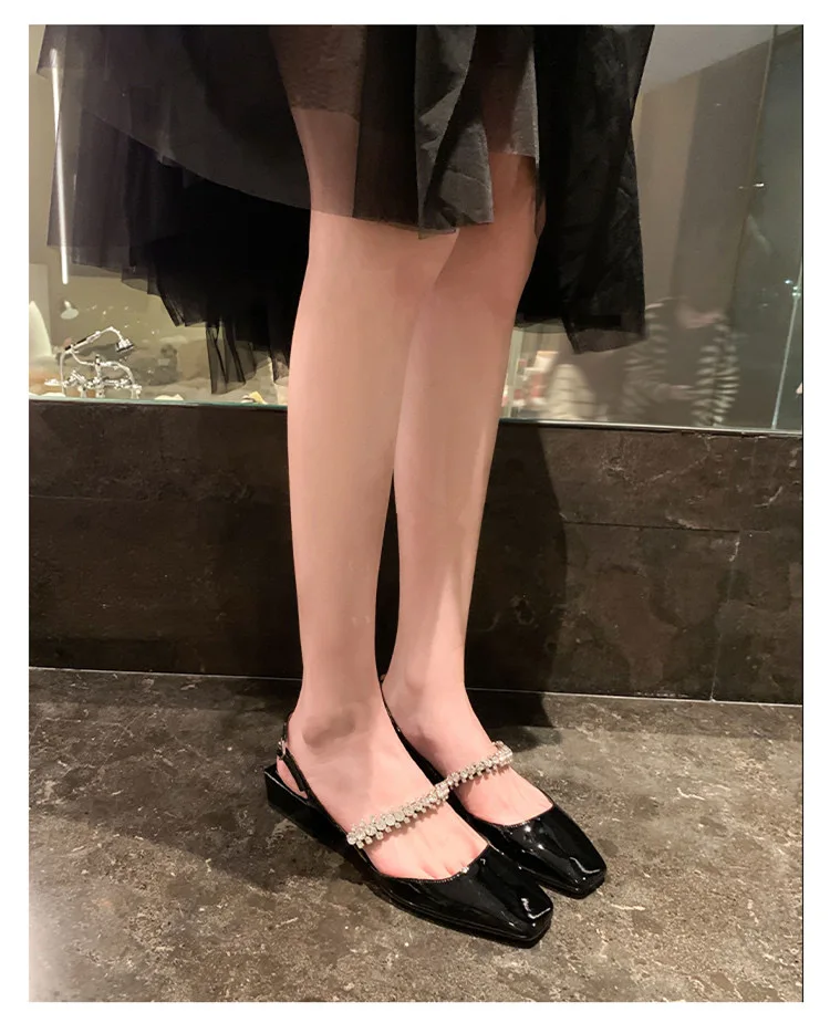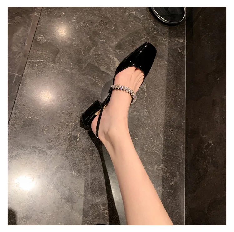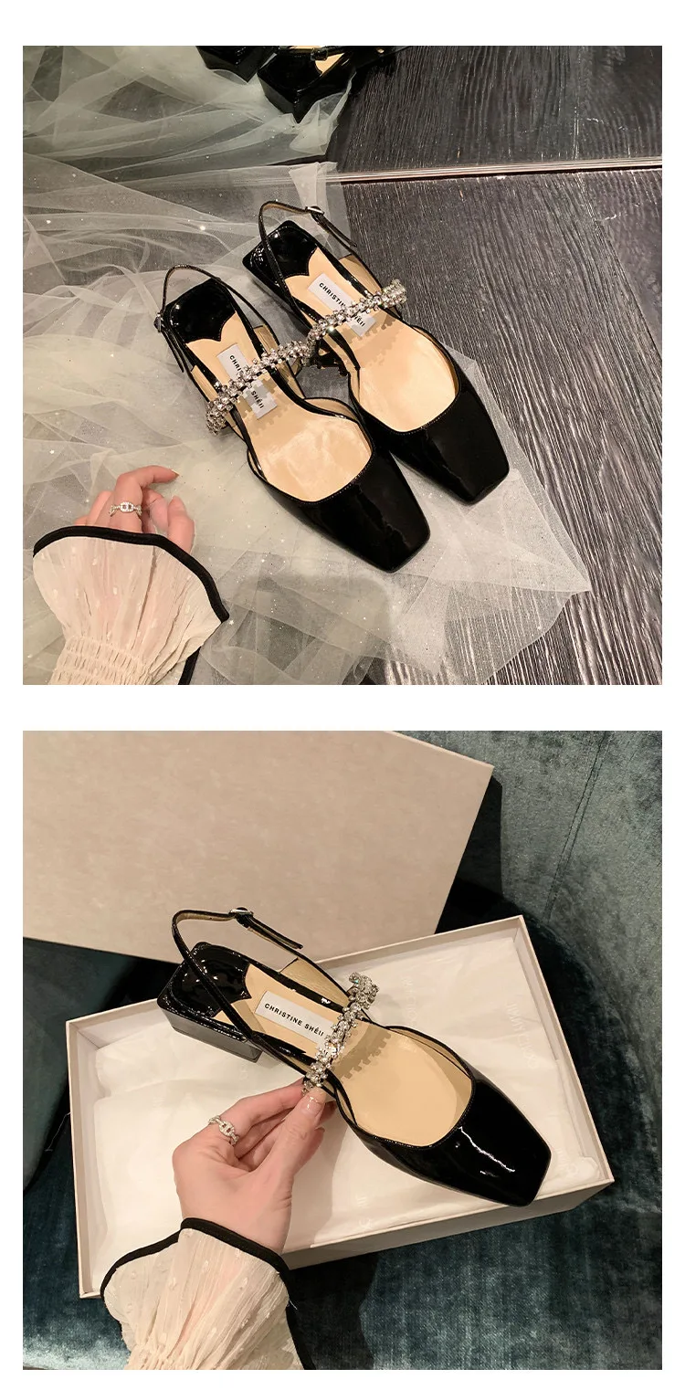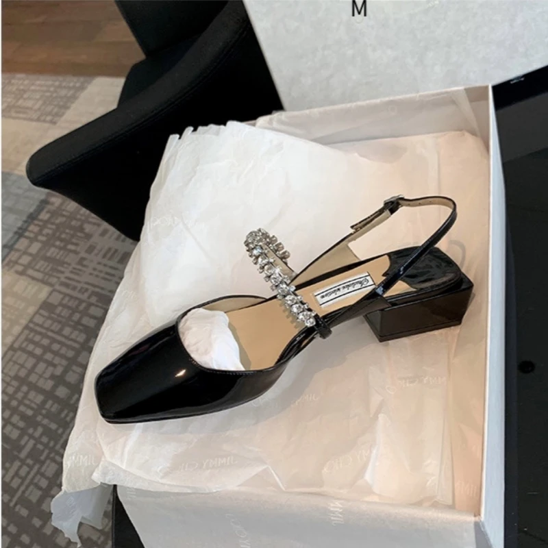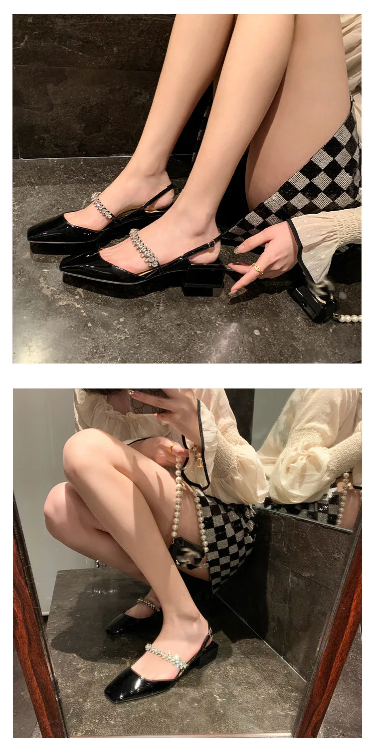 Advbridge French chunky heel diamond-head sandal women 2024 spring and summer new fashion low heel one-line buckle Mary Jane single shoes
