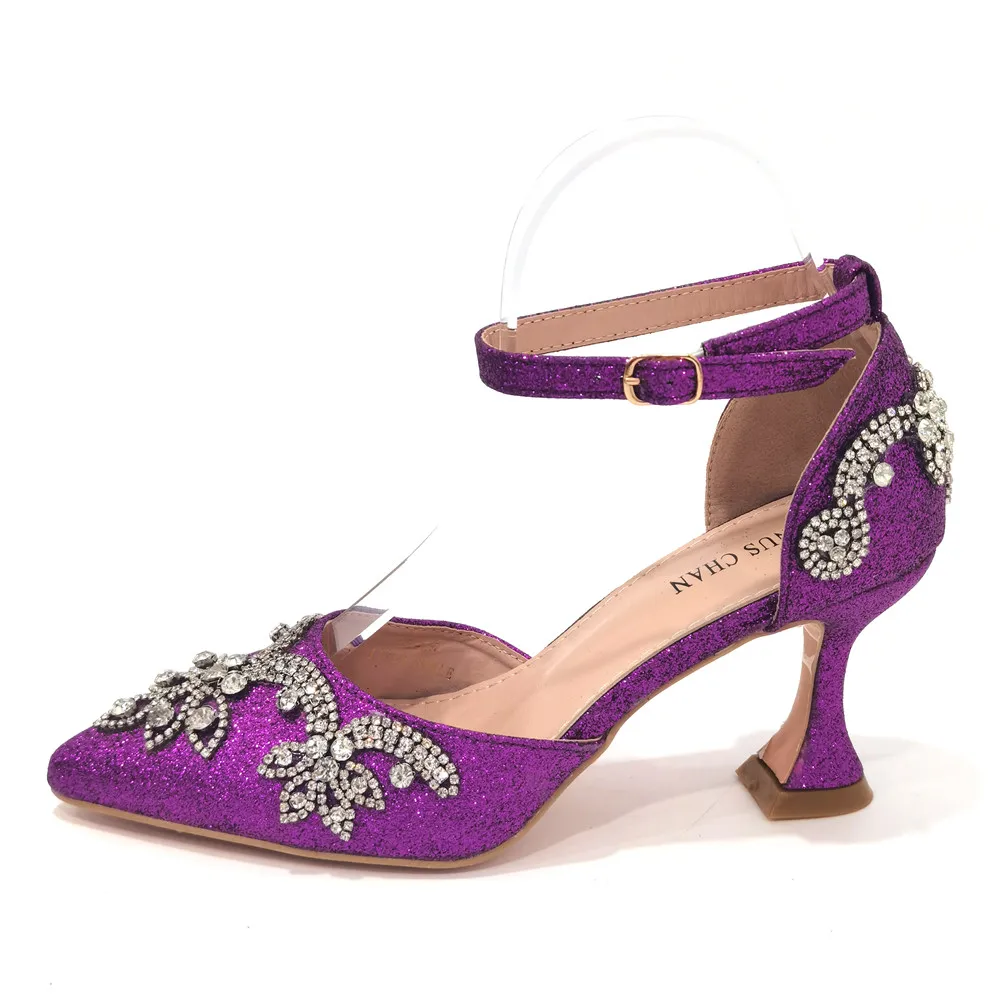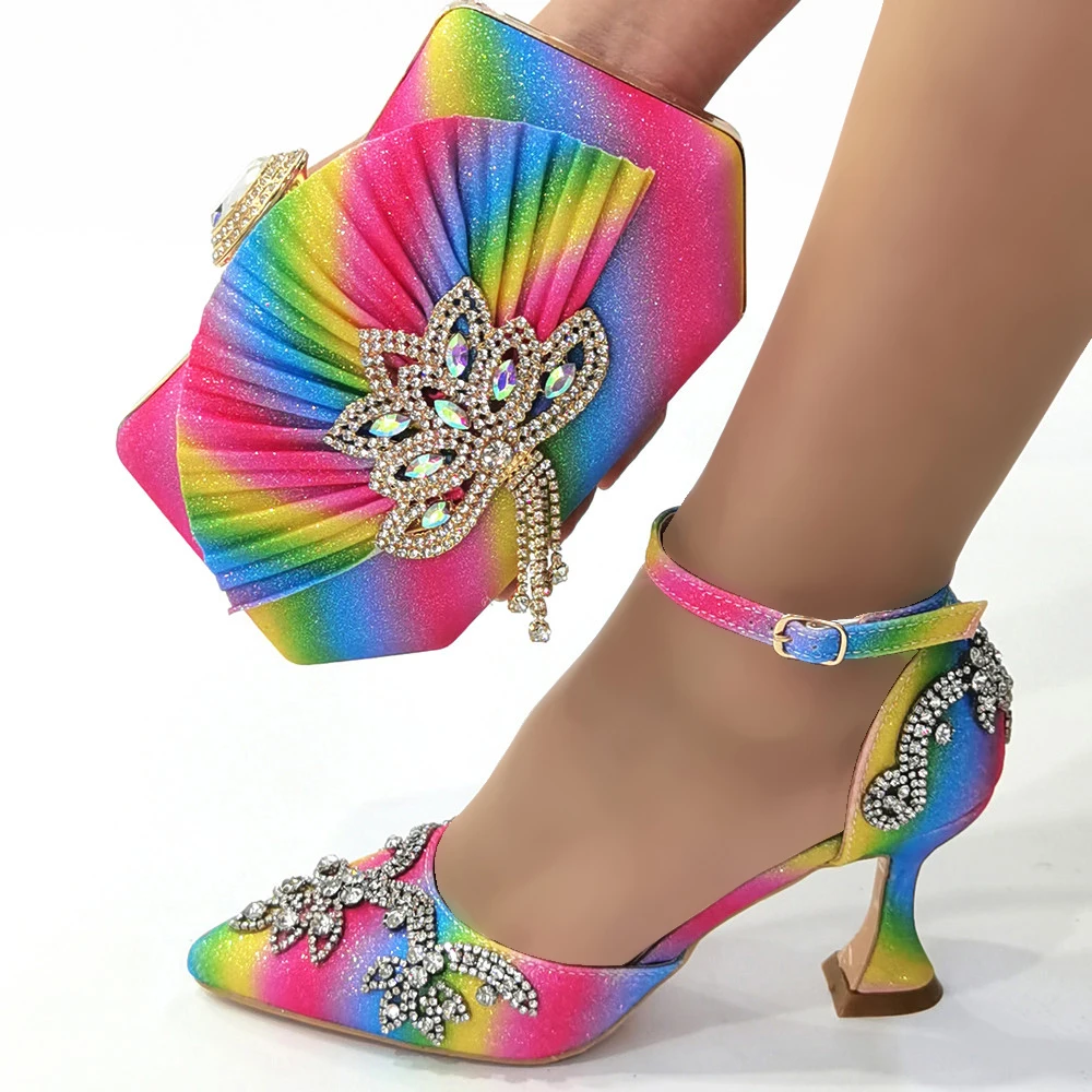 Advbridge Fresh Beautiful Silver Women's Shoes Totem-style Arrangement Of Rhinestone Design Party Ladies Shoes And Handbags