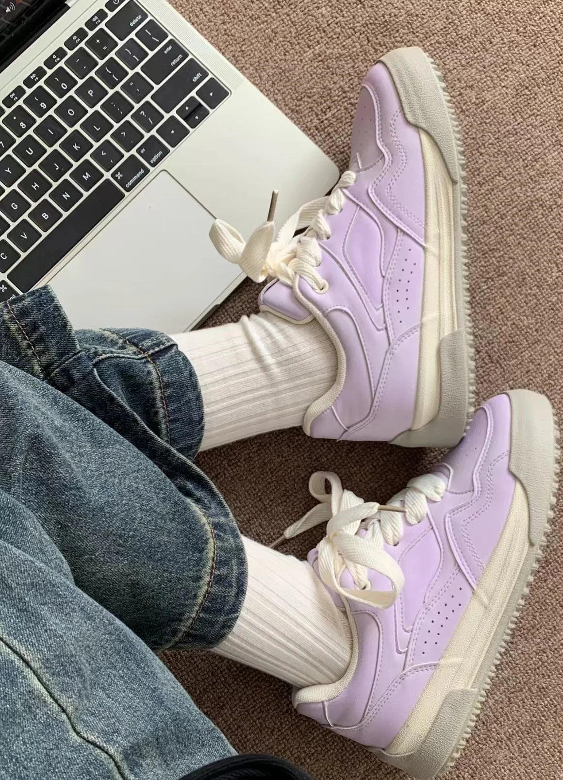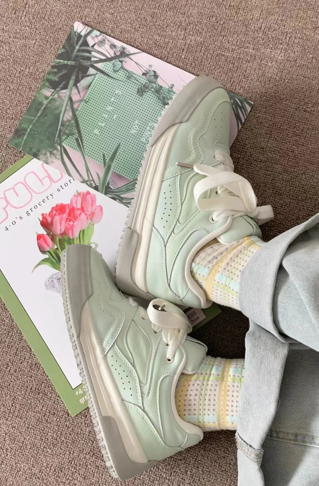 ADVBRIDGE - Fresh Women Sneakers Soft Purple Female Students Board Shoes Lace Up Tennis Sport Shoes Lt.Green Latex Insole Quality