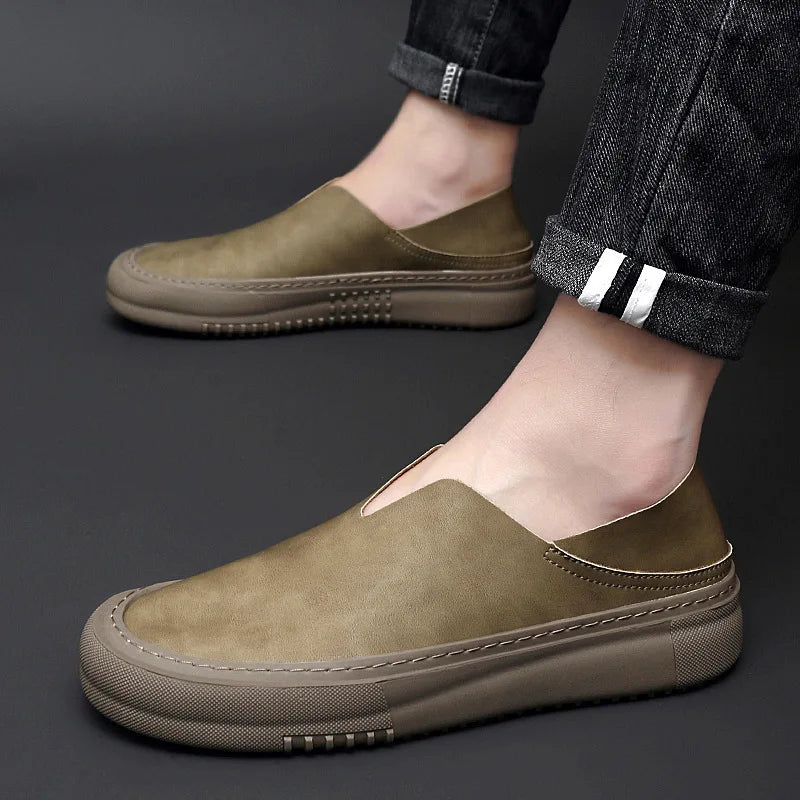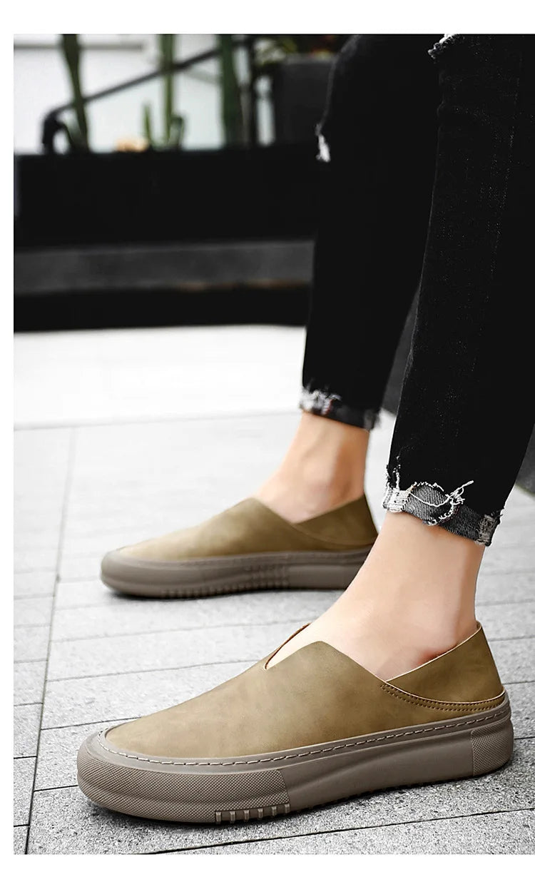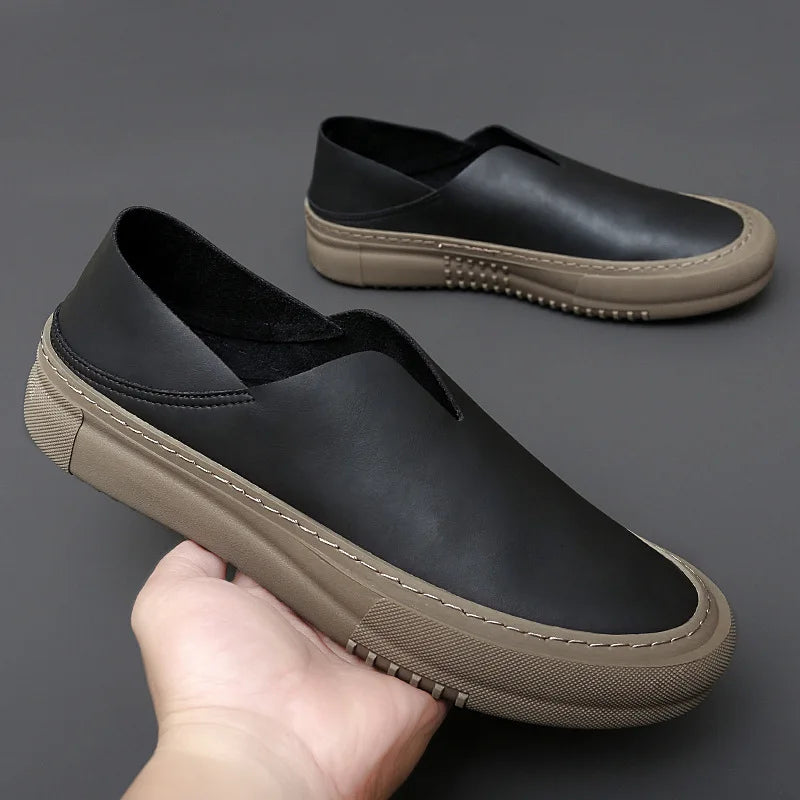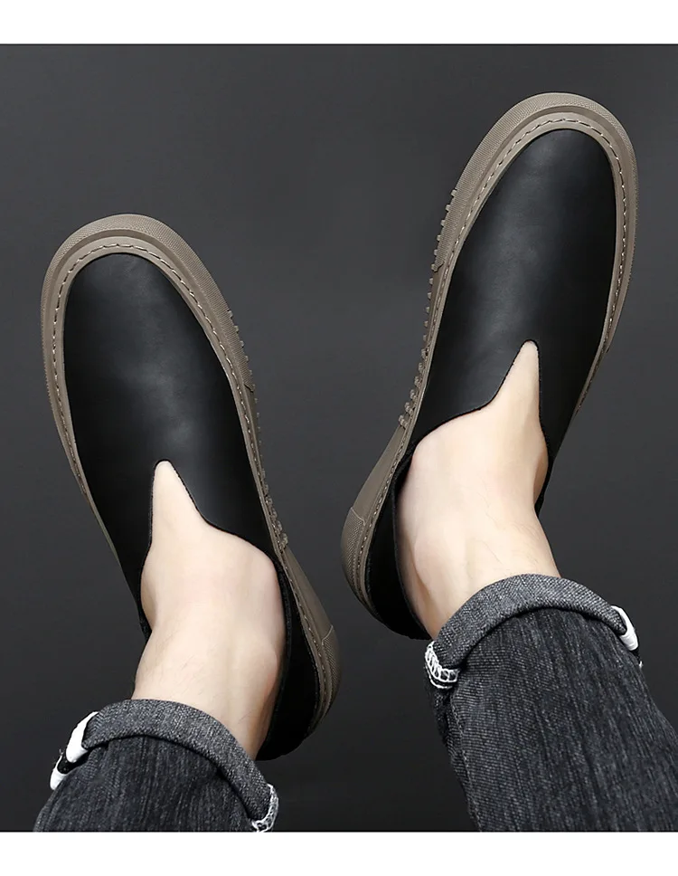ADVBRIDGE - Genuine leather men's shoes fashionable one foot rubber outdoor sports moccasin shoes men's soft casual loafers