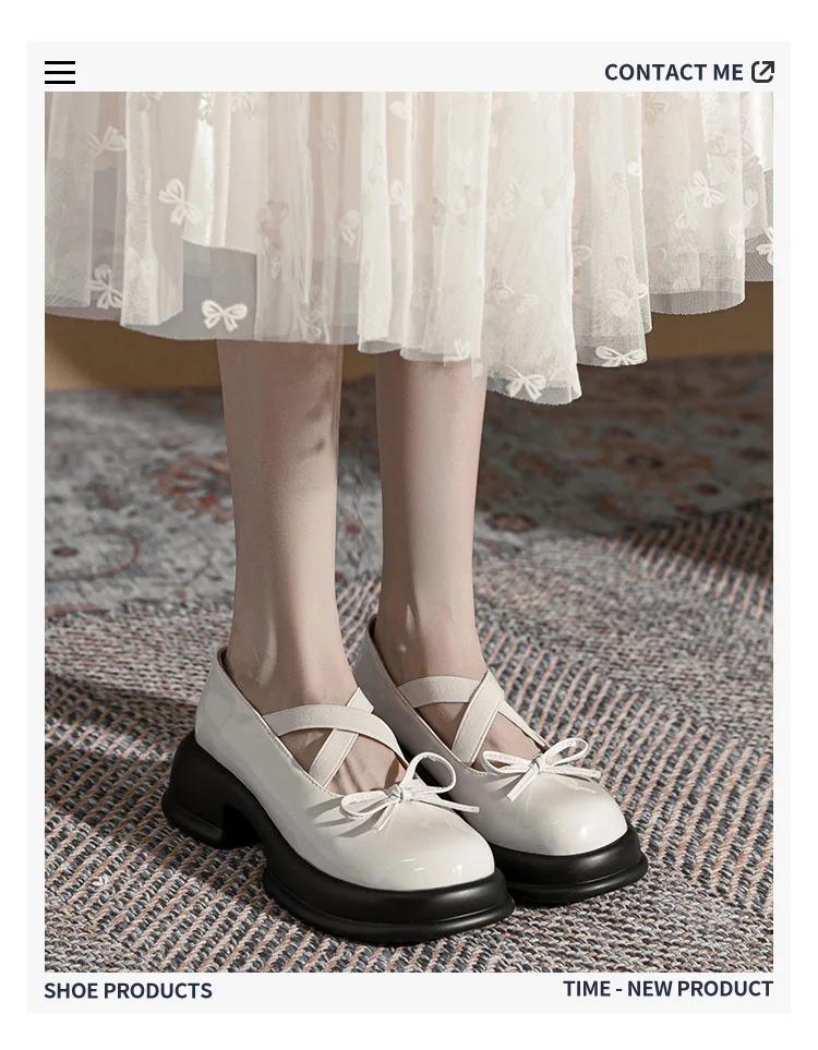 Advbridge Girls Sweet Bow Mary Jane Shoes for Women Women's New Thick Soled Platform Pumps High Heels Cross Tie Ballet Style Shoes