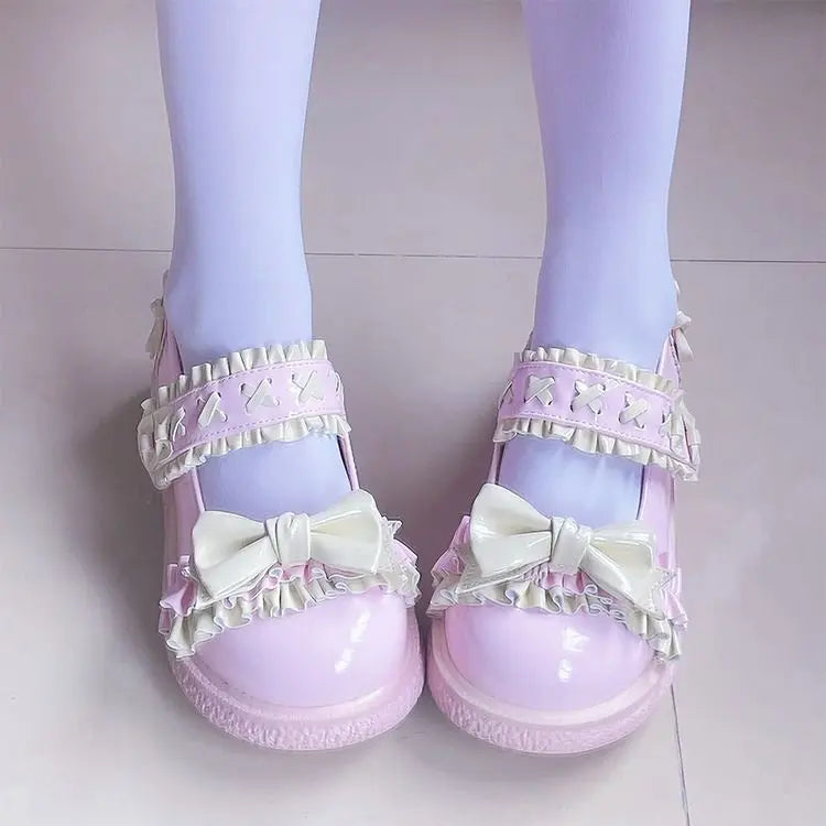 Advbridge Glossy Patent Leather Lolita Shoes Women Red Bride Wedding Party Strappy Platform Mary Janes Pumps Ankle Strap Block Cuban Heels