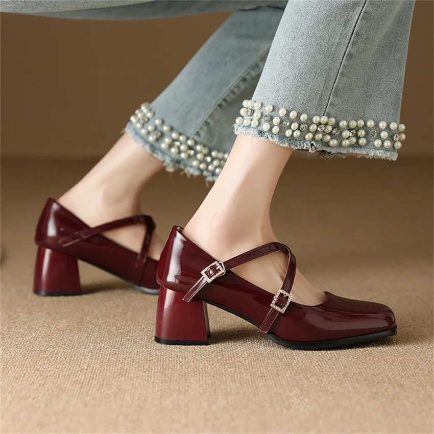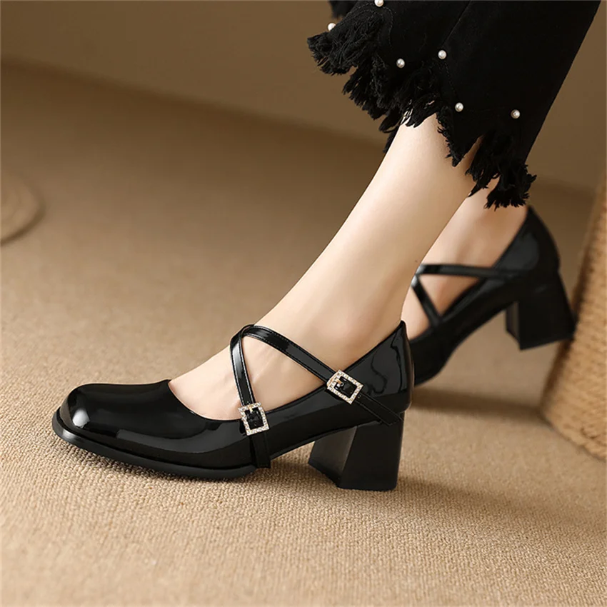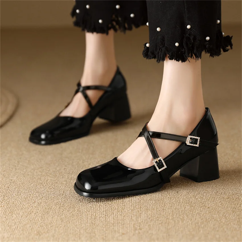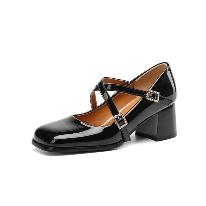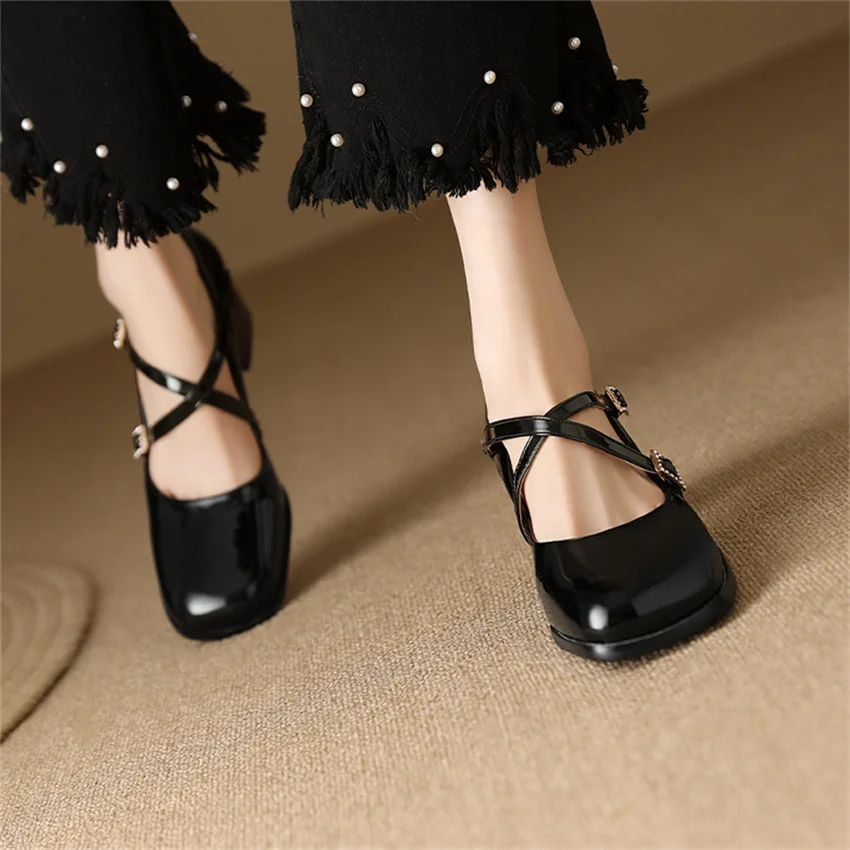 Advbridge High Heels Woman Shoes Size 46 Fashion Cross Straps Square Toe Elegant Office Black Heels Party Women Shoes Dropshopping