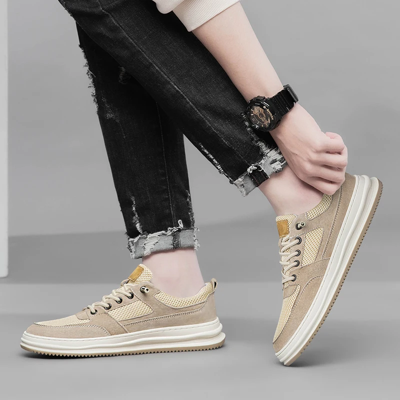Advbridge High Quality Men Casual Shoes Breathable Men Leather Sneakers Handmade Man Skateboard Shoes New Design Sport Flats Lace-Up Shoes