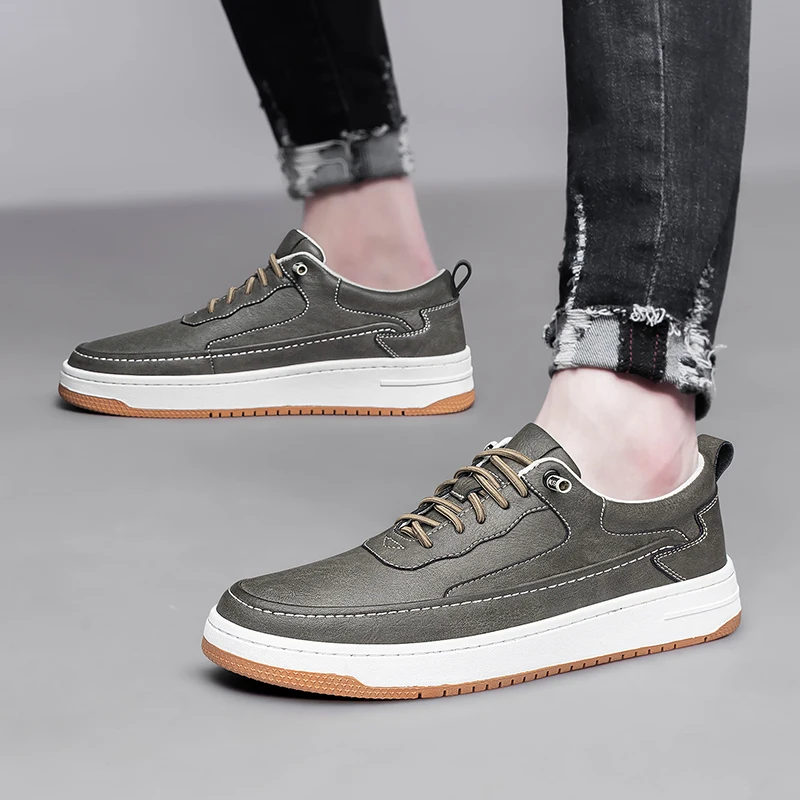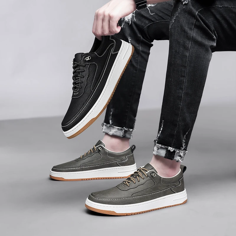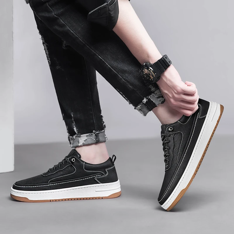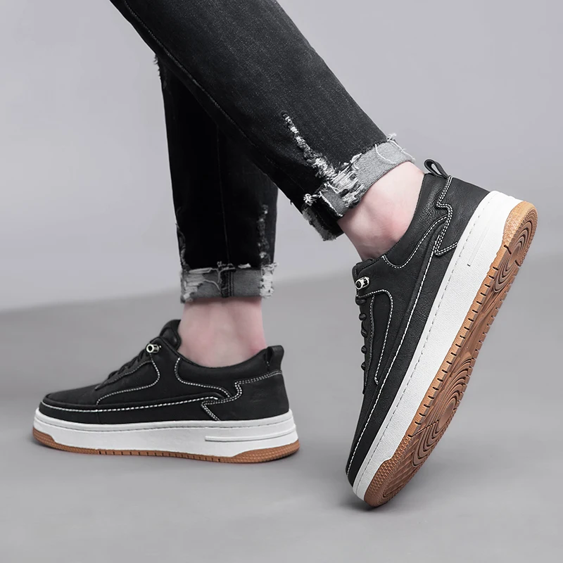 Advbridge High Quality Mens Casual Shoes Genuine Leather All-match Men Shoes Light Comfy Sneakers Men Vulcanized Shoes Lace-Up Skateboard