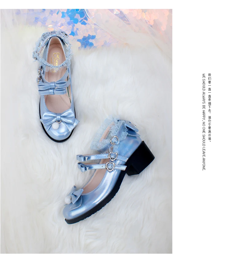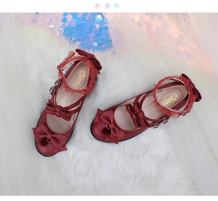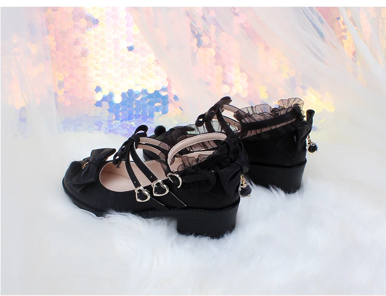 Japanese kawaii girl sweet lolita shoes vintage round head thick heel women shoes cute lace bowknot kawaii shoes loli cosplay