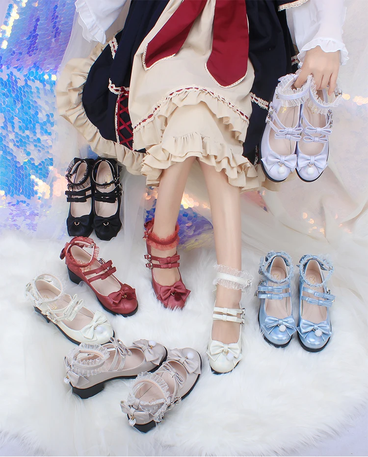 Advbridge Japanese kawaii girl sweet lolita shoes vintage round head thick heel women shoes cute lace bowknot kawaii shoes loli cosplay