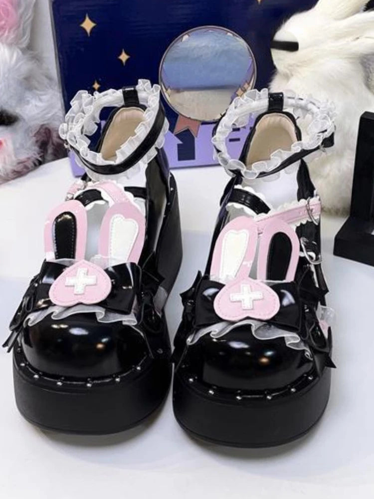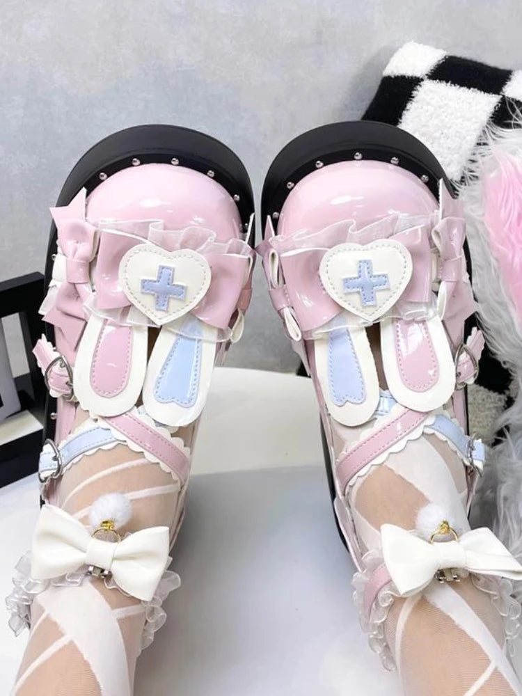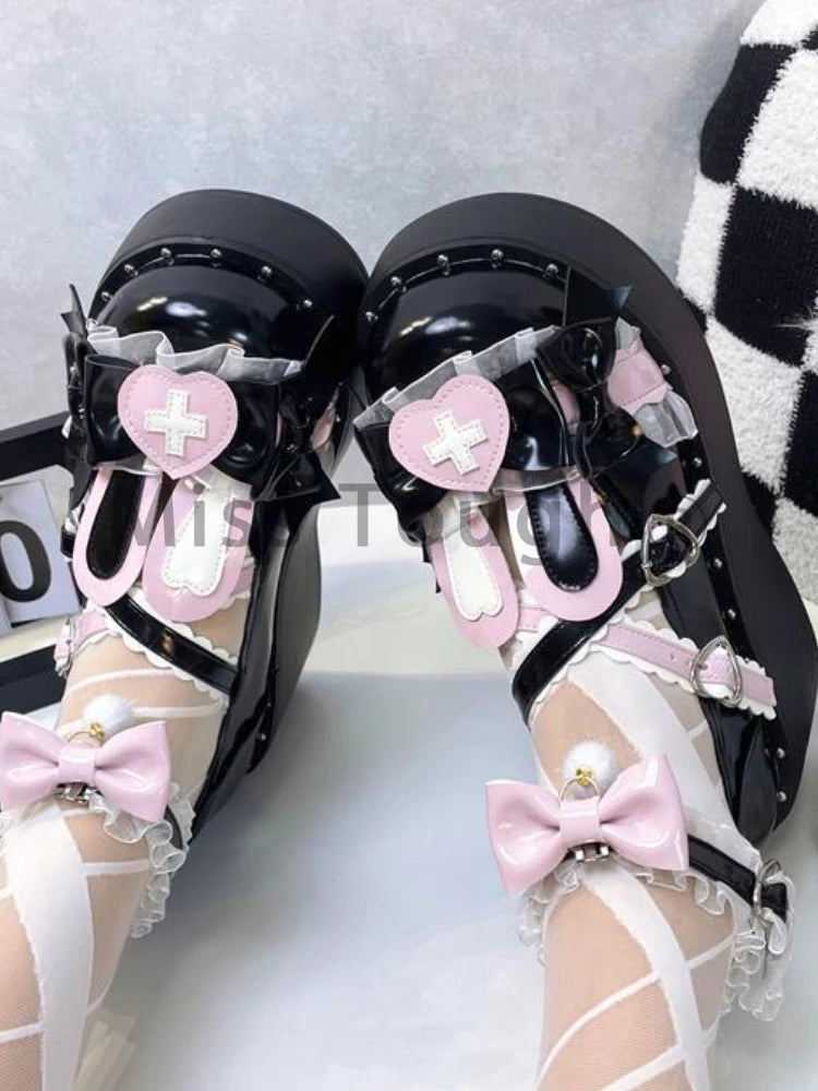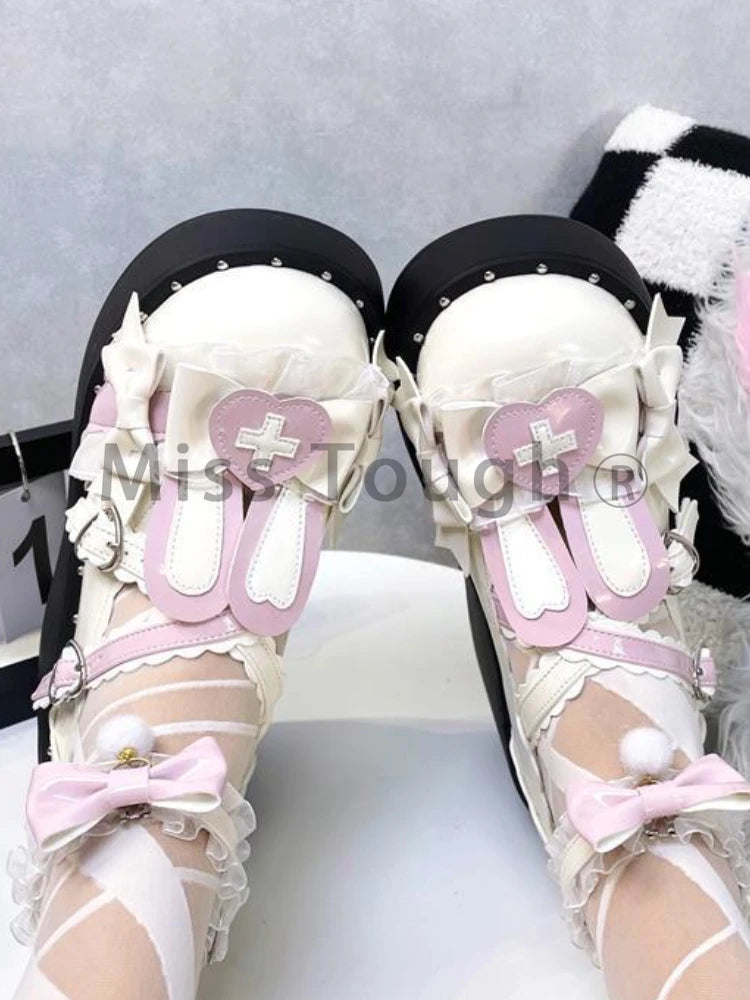 Advbridge Japanese Kawaii Lolita Mary Janes Shoes Women Heart-shape Vintage Sweet Pumps Shoes Female Cross-tied Elegant Fashion Shoes