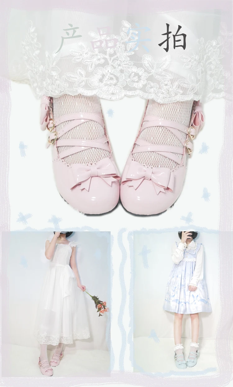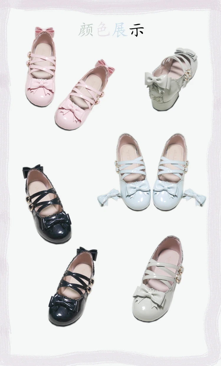 Advbridge Japanese Ladies Kawaii Girl Sweet Lolita Shoes Vintage Round Toe Cross Bandage Women Shoes Cute Lace Bowknot Kawaii Loli Shoe