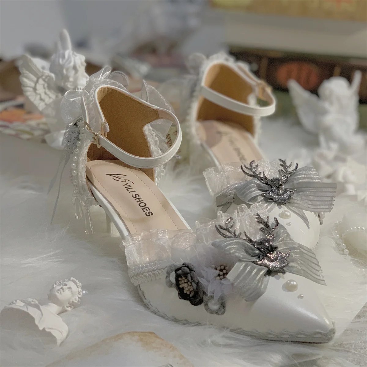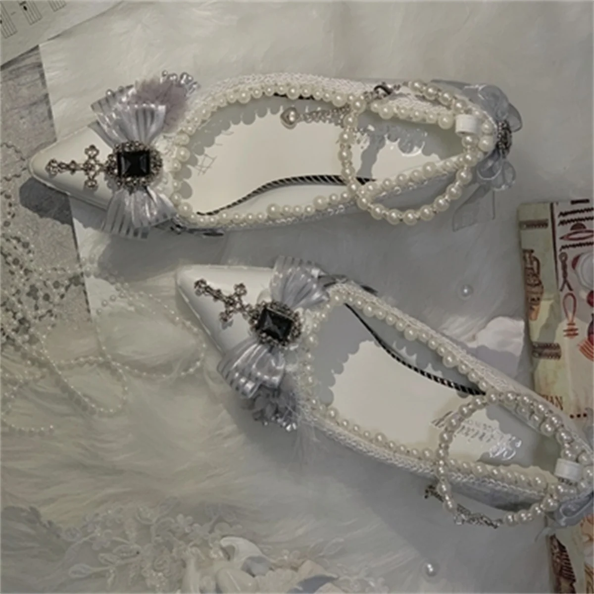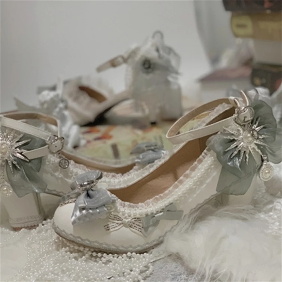 Advbridge Japanese Style Lolita Cosplay Shoes Gothic Flower Wedding Victorian Girls Cross Striped Bow Lace Pearl Flower High Heeled Shoes