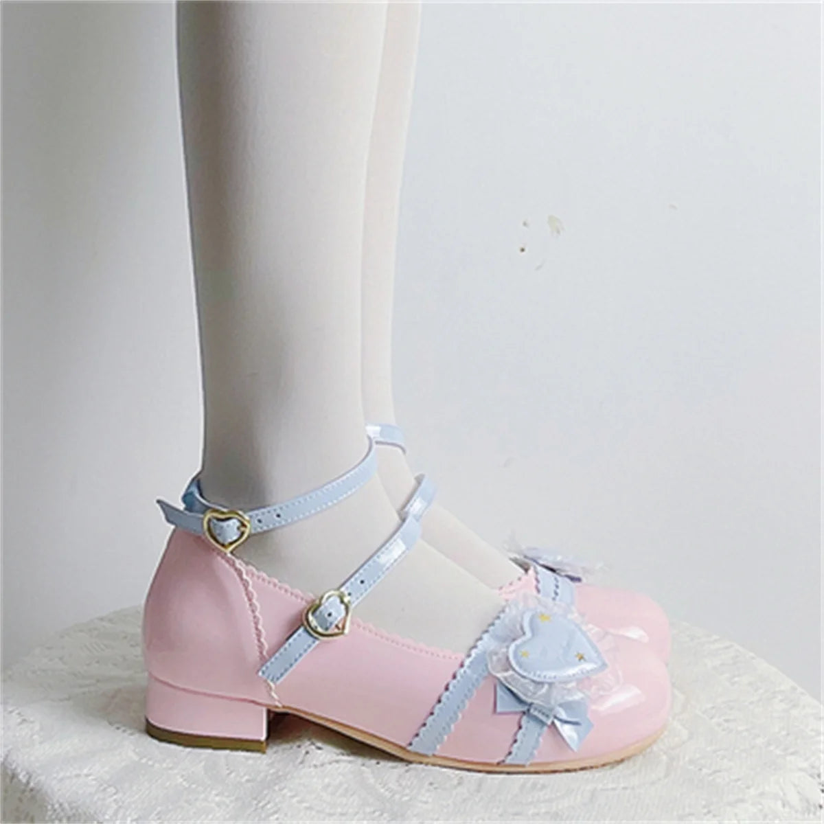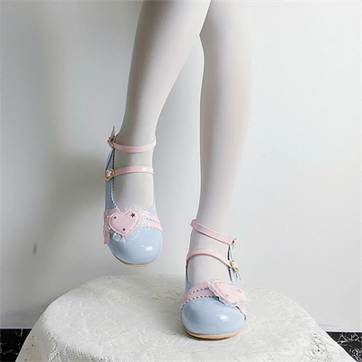Advbridge Japanese Sweet College Style Victorian Girl Shoes Cosplay Lolita Kawaii Lace Love Lotus Leaf Star Letter Buckle 2.5-4.5cm Shoes