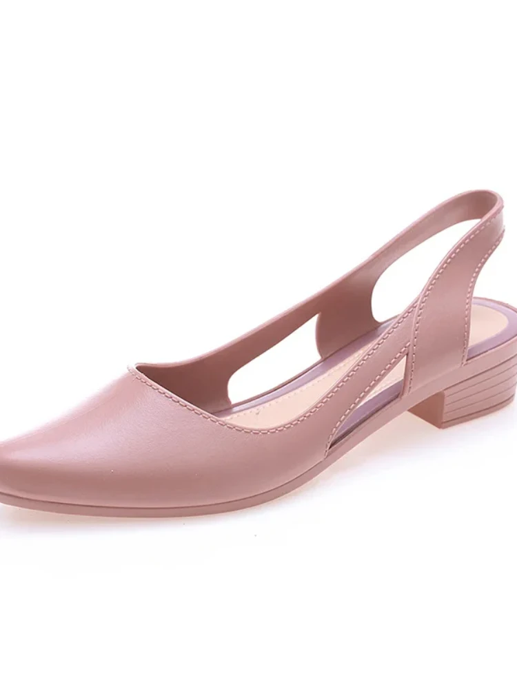 Advbridge Jelly Elegant Sandals Women Pointed Toe Chunky Med High Heels Flip Flops Slingback Casual Candy Skidproof Beach Shoes Female New