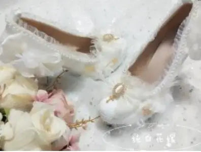 Advbridge kawaii girl tea party princess kawaii shoes pointed retro lace bowknot women shoes loli cosplay cos Japanese sweet lolita shoes