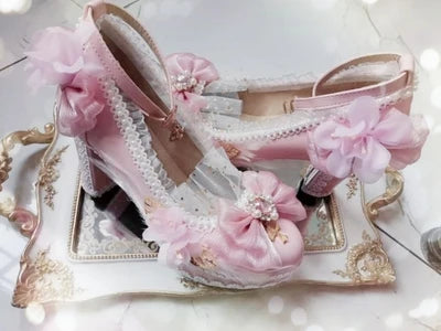 kawaii girl tea party princess kawaii shoes pointed retro lace bowknot women shoes loli cosplay cos Japanese sweet lolita shoes