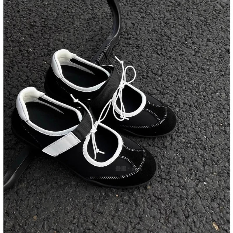 ADVBRIDGE  - Lacing Velcro ballet Mary Jane shoes female 2025 spring and summer new black shallow mouth flat bottom sports single shoes