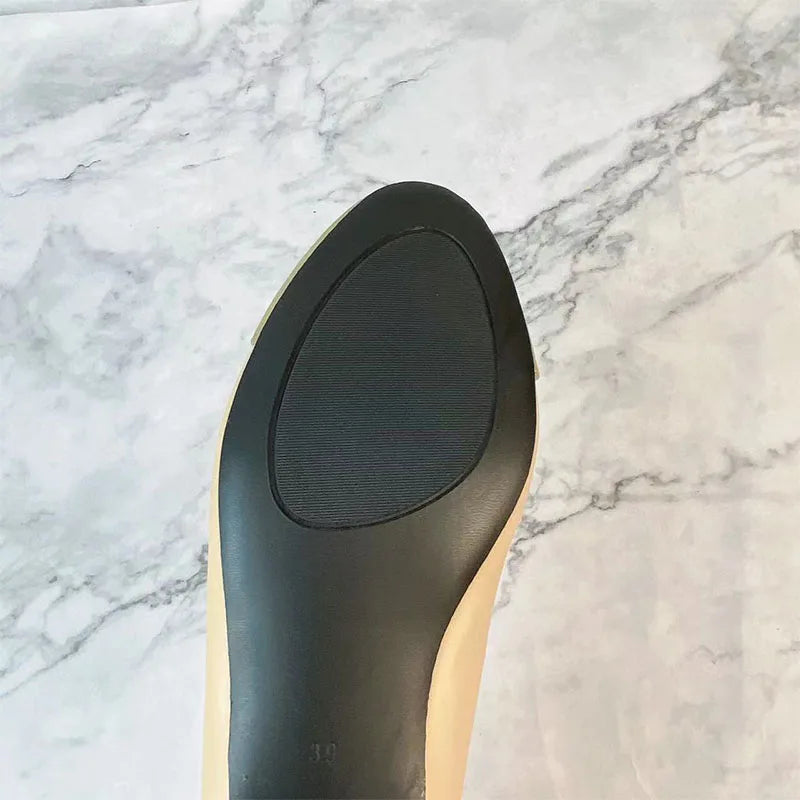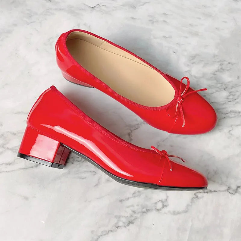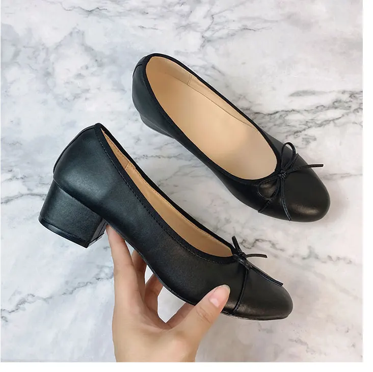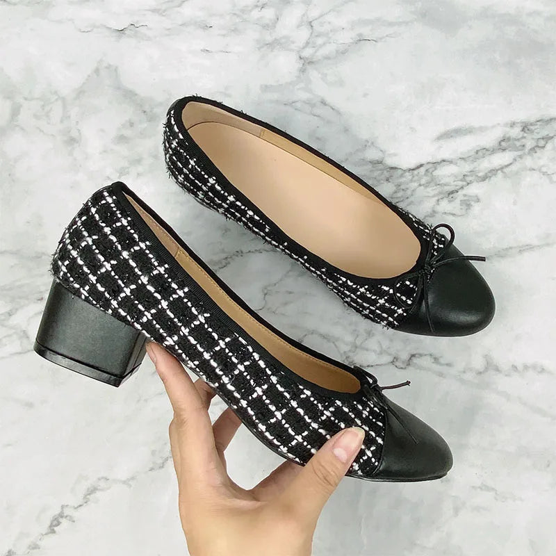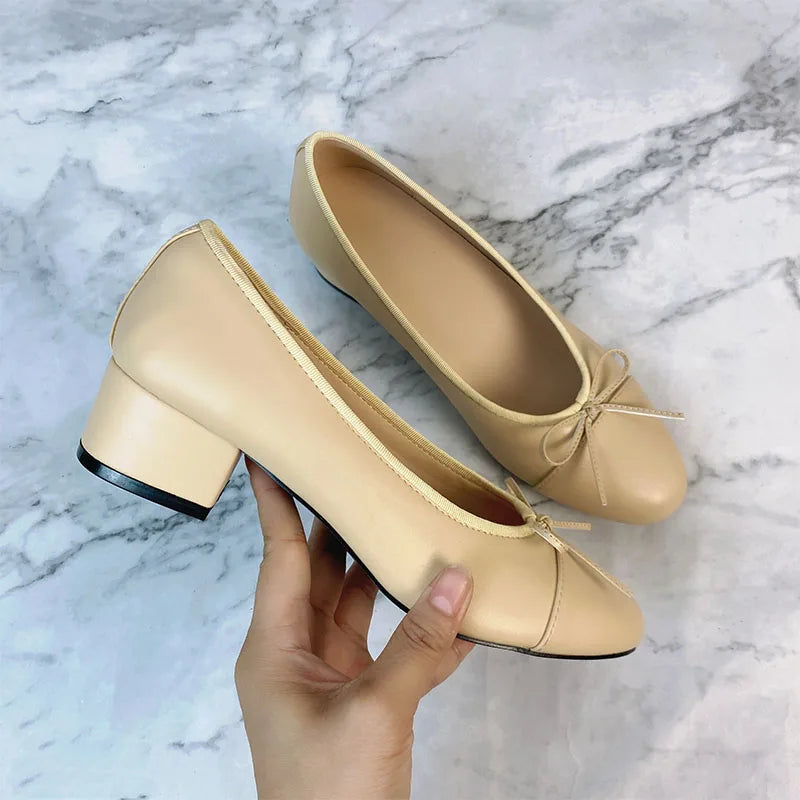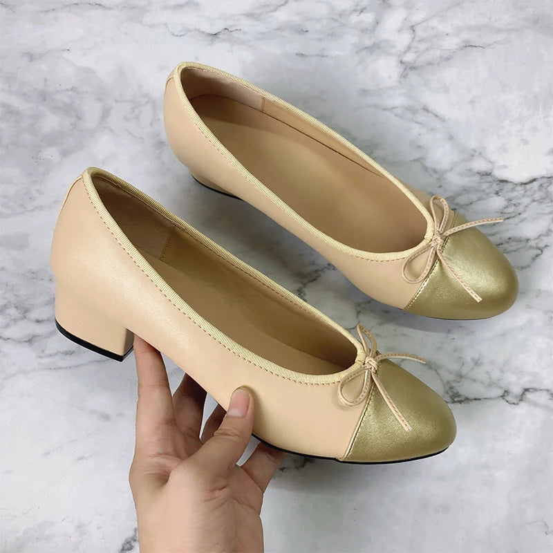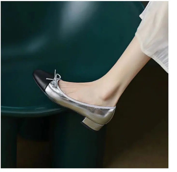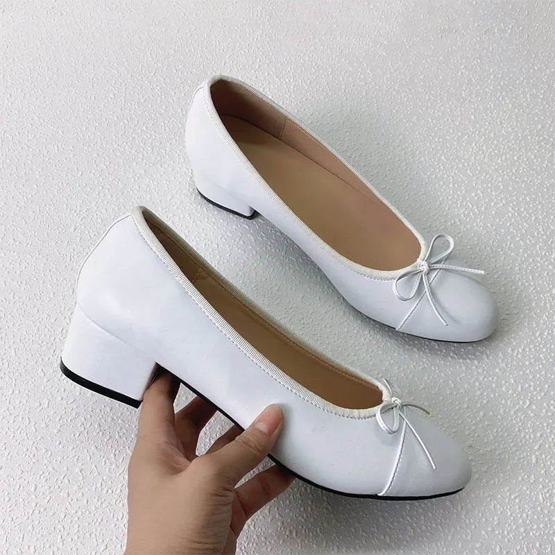 Advbridge Large 43 Multi-Color Bow Ballet High Heels Spring and Autumn Round Toe Fight Work Outside Wearing Block Heel Women's Shoes
